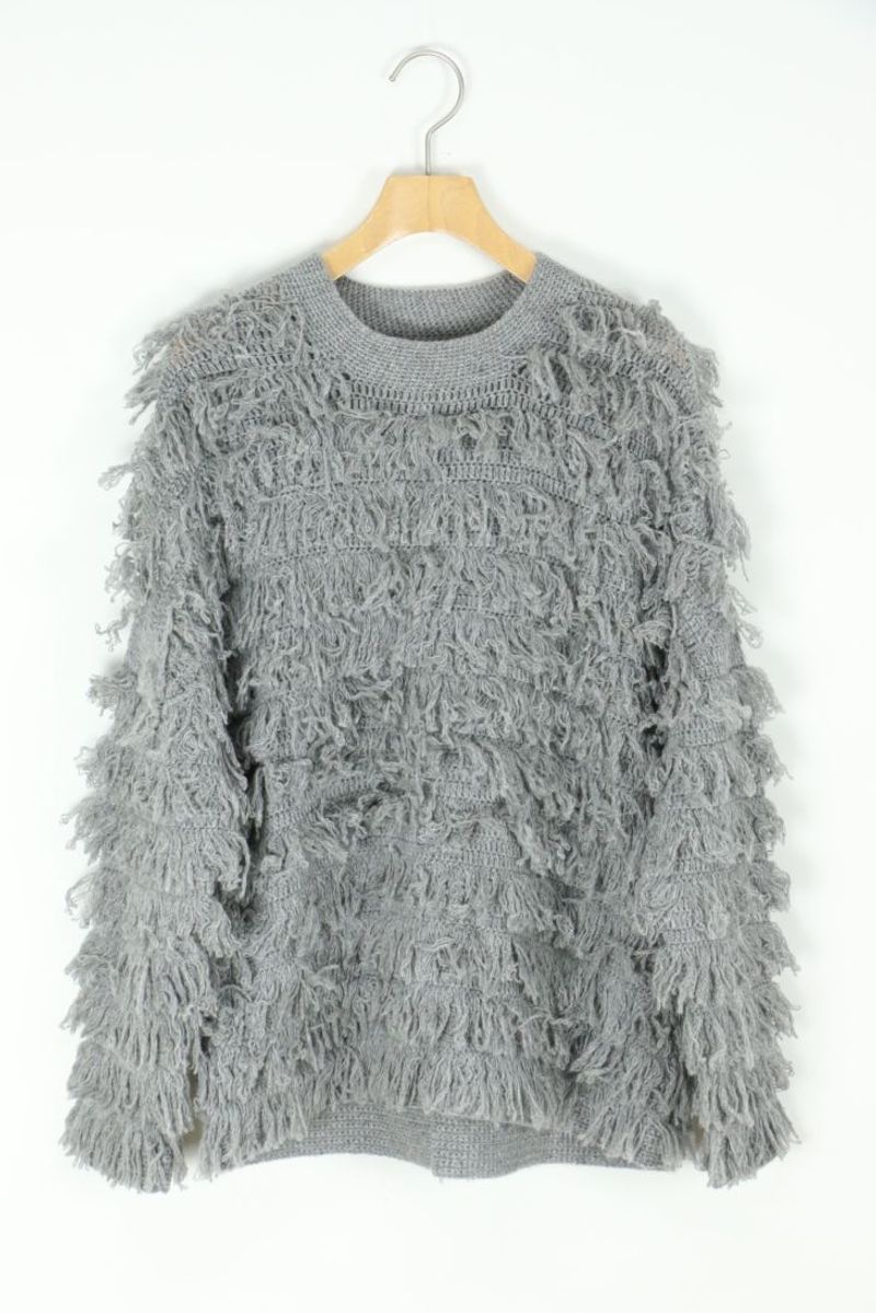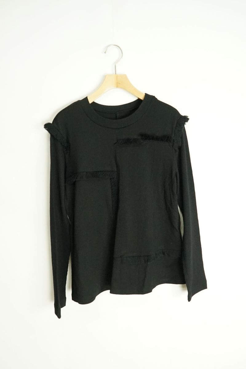 ミニフリンジ切替長袖ウールカットソー