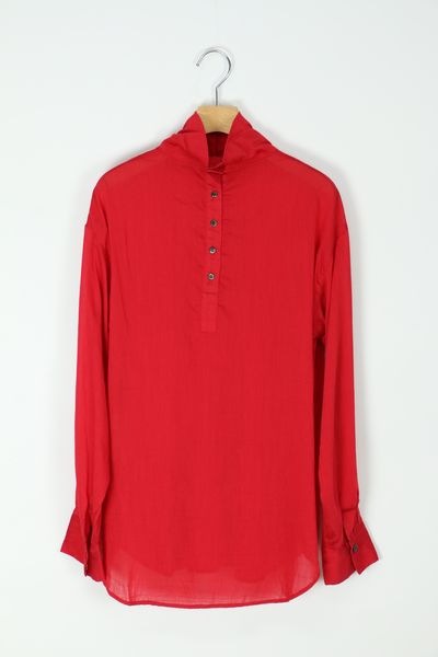 cotton silkローン クルーネック段切替フレアギャザーチュニックブラウス