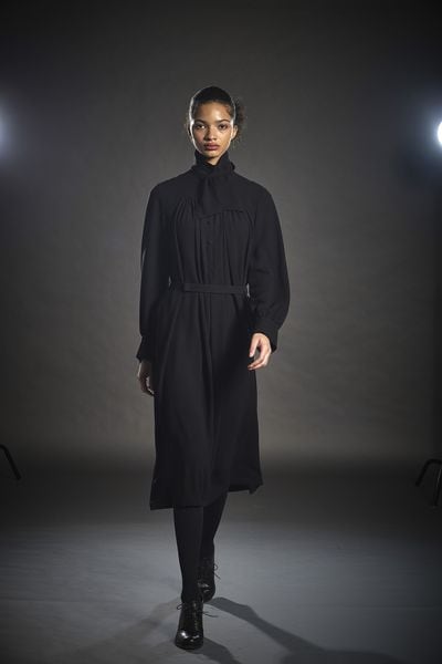 ライトジョーゼット ボウタイカラーピンタックワンピース