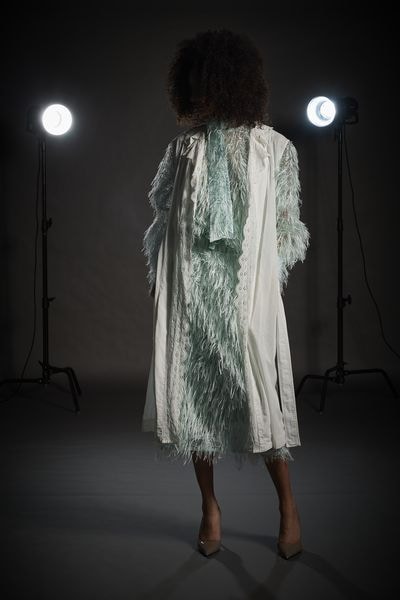 フェザーシアージャカード 取外しボウタイ付続き袖ブラウス