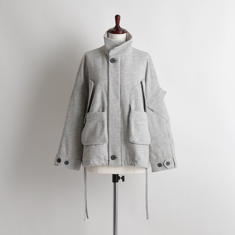 フェザーカールメルトンニット スタンドカラーカーゴブルゾン