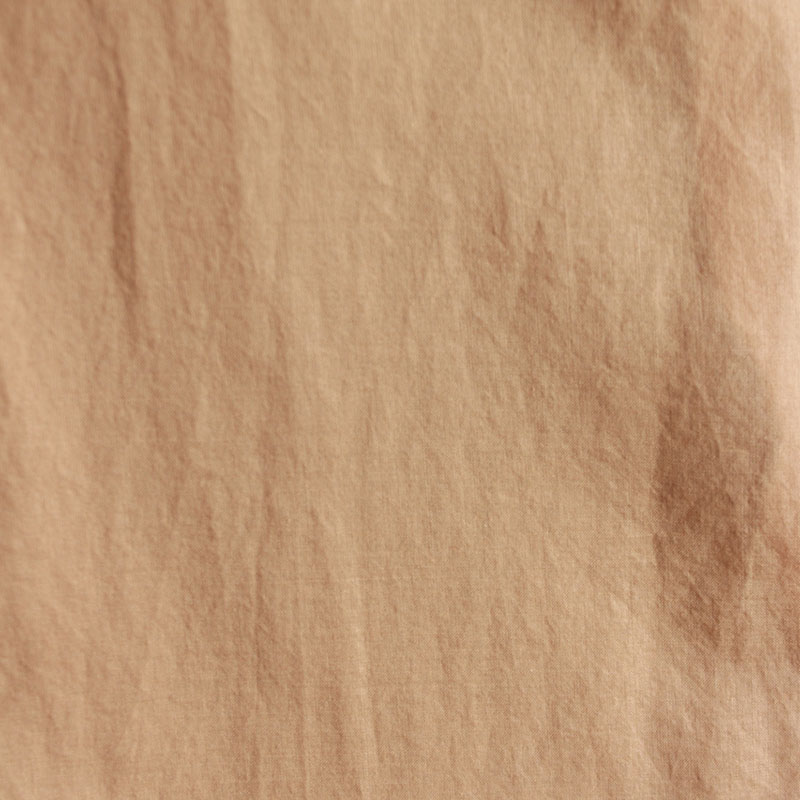 素材には、静岡県浜松市<古橋職布>にて昔ながらのシャトル織機で丁寧に織られた布をメインに使用しており、100番単糸という極細の繊細な糸を低速で織り上げ、繊維の自然な膨らみを残して優しい印象に仕上げています。