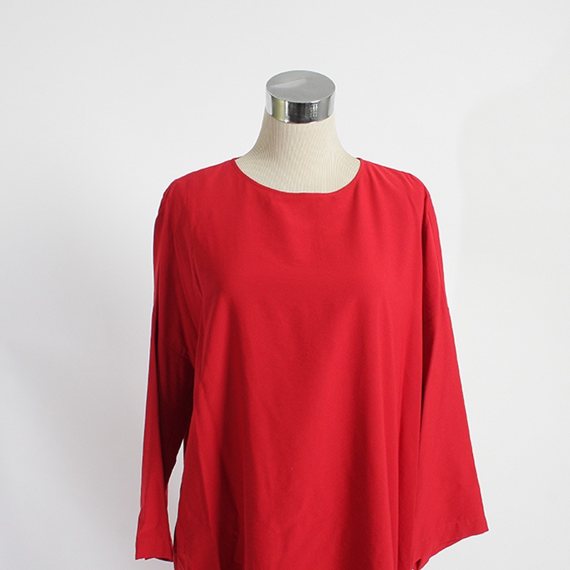 ふくらはぎ位の着丈、ゆとりのある身巾、ドロップショルダー、7~8分位の袖丈です。