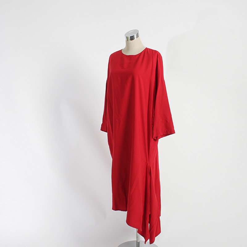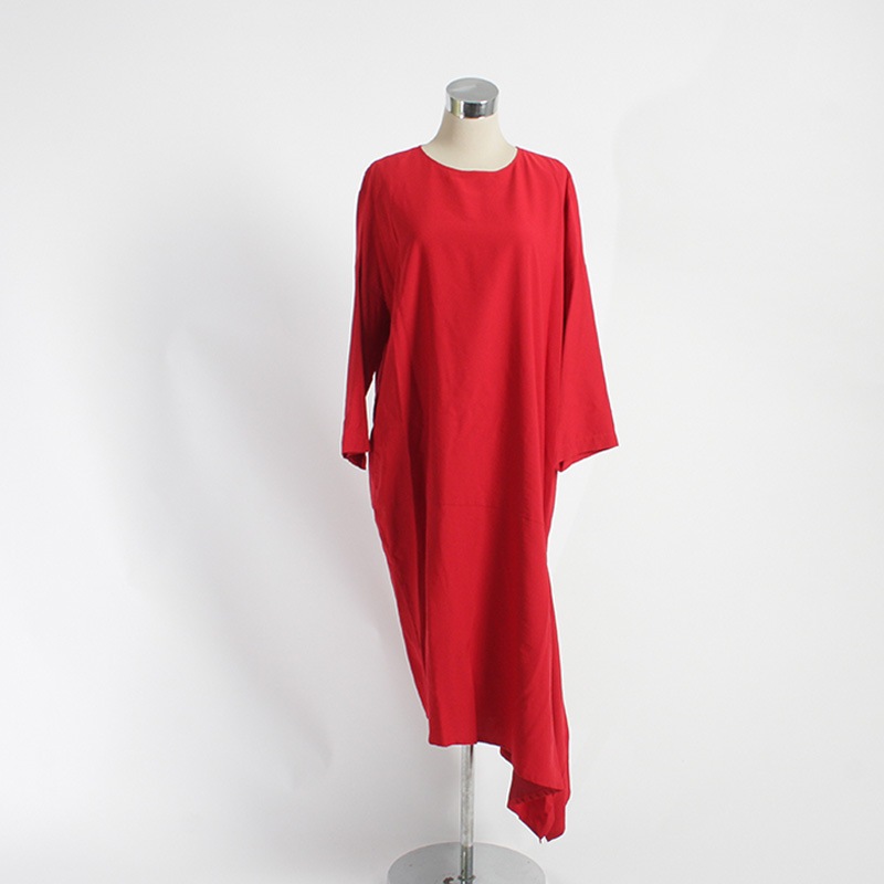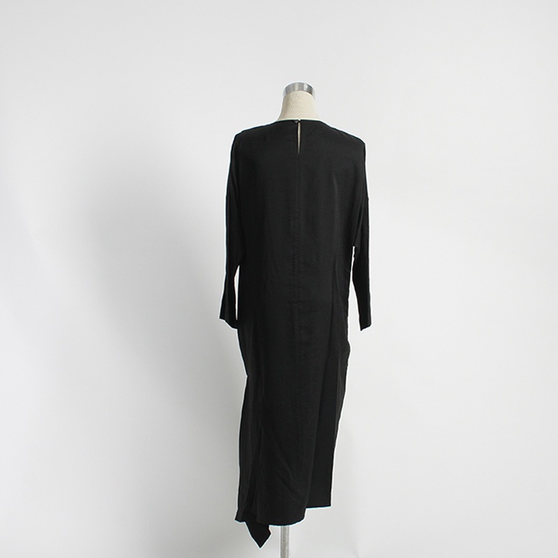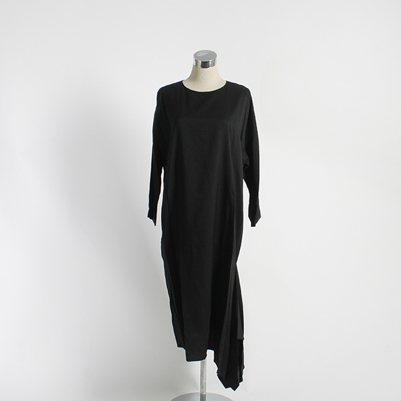 ノーカラードレープ裾ワンピース