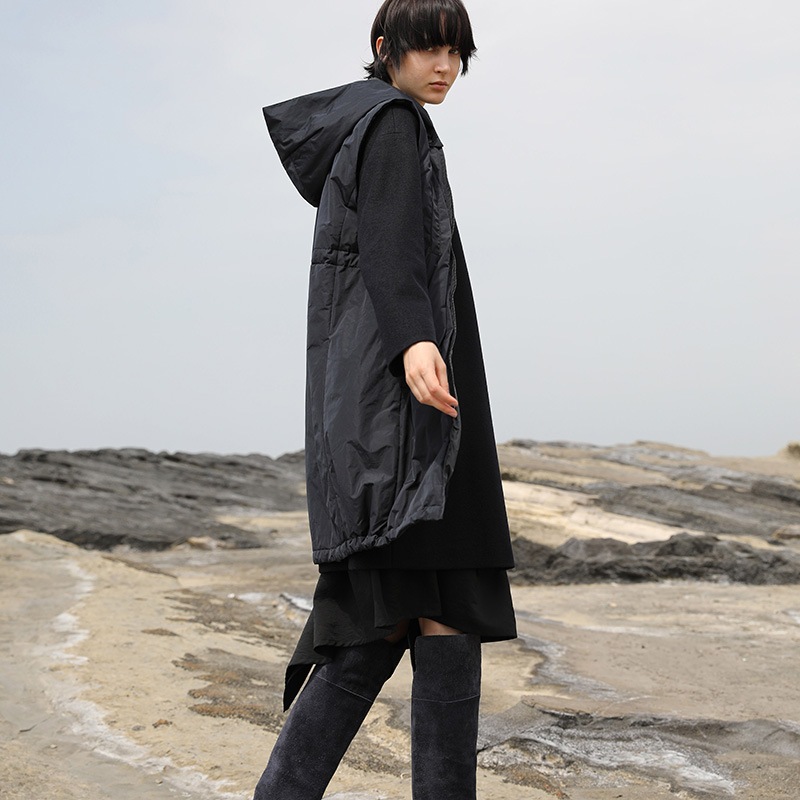 【KAMISHIMA CHINAMI(カミシマチナミ)ノーカラードレープ裾ワンピース】