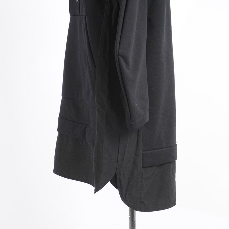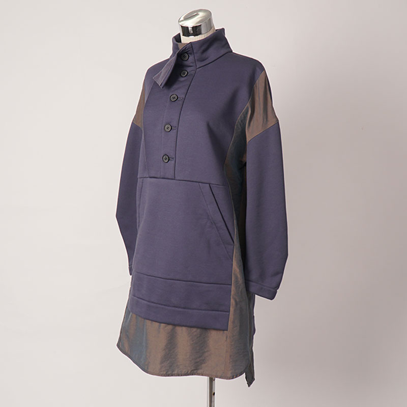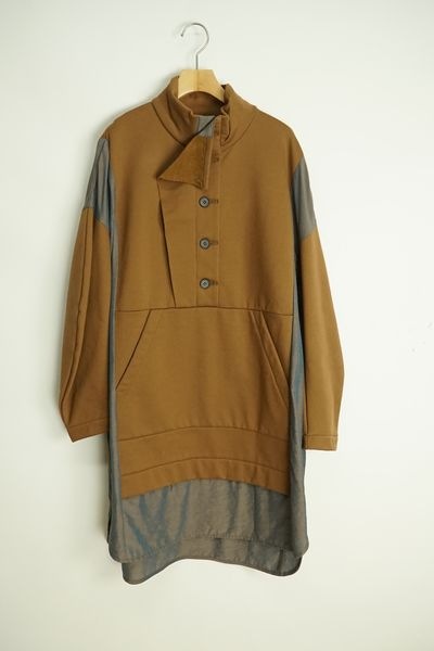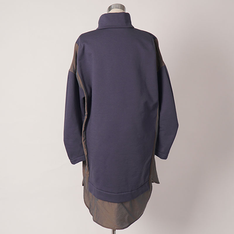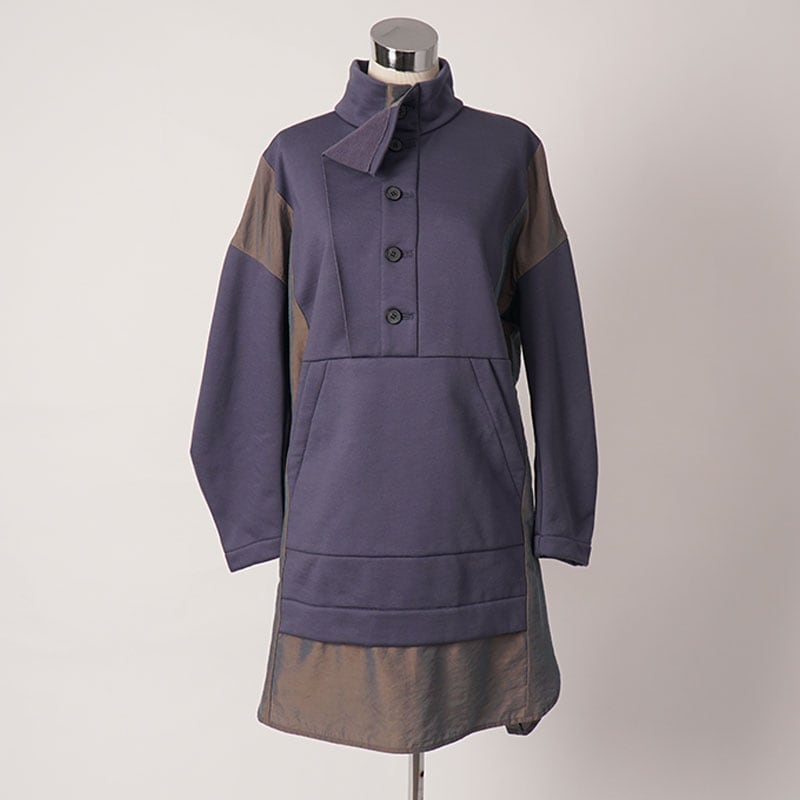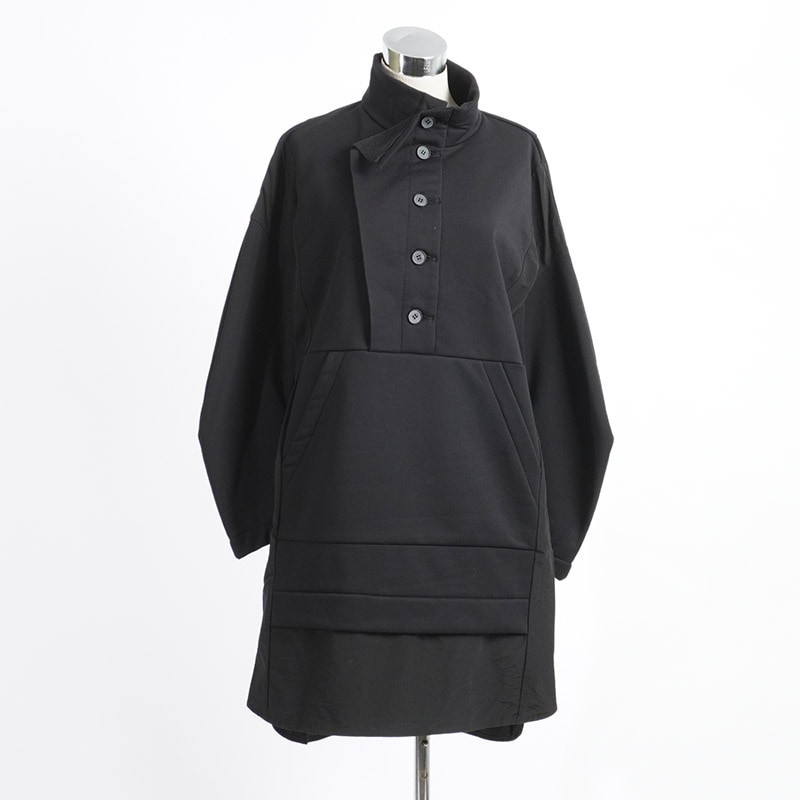 アウトドアスタイルのプルオーバーのディテールを取り入れた異素材ミックスのかぶりチュニックワンピース。
