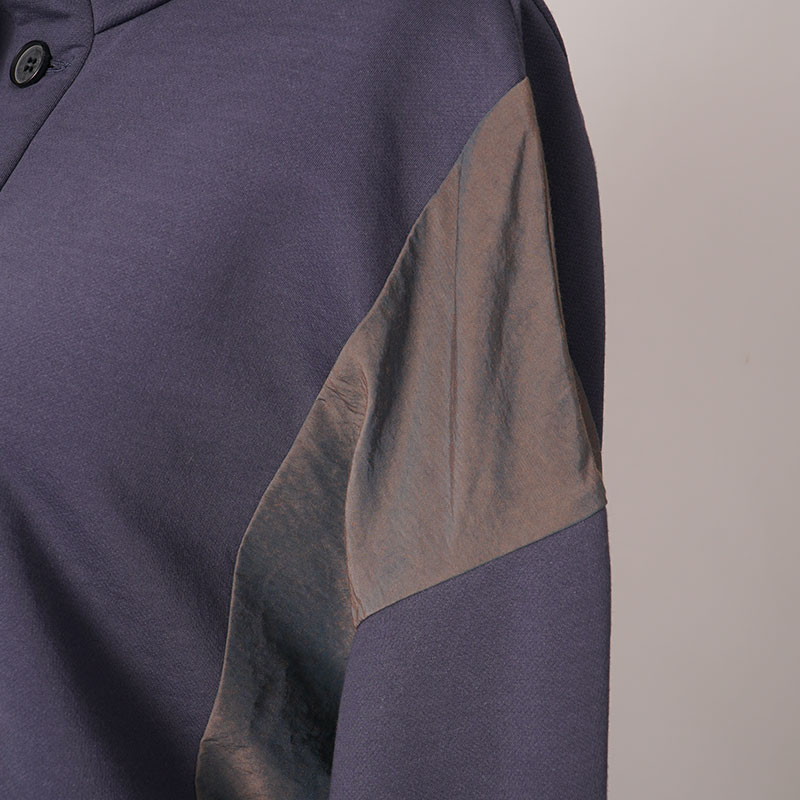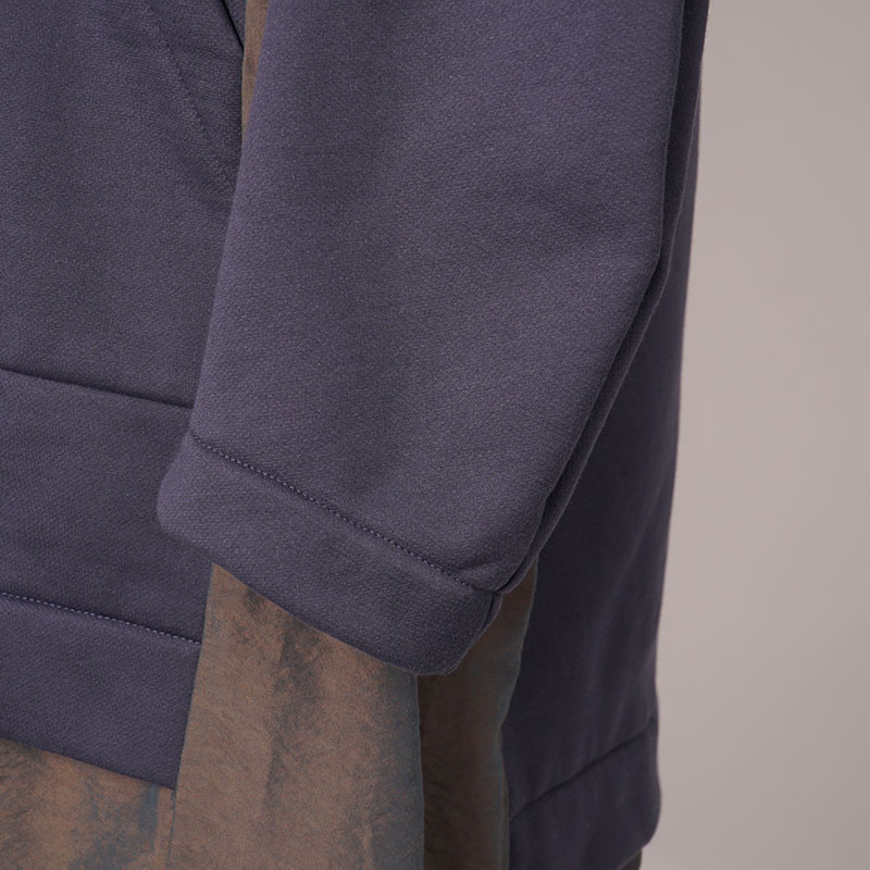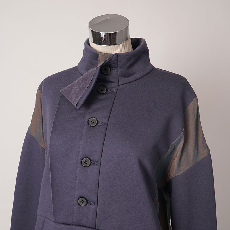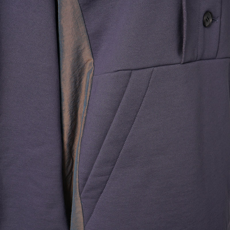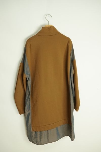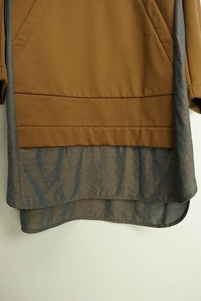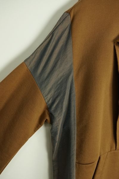 アウトドアスタイルのプルオーバーのディテールを取り入れた異素材ミックスのかぶりチュニックワンピース。