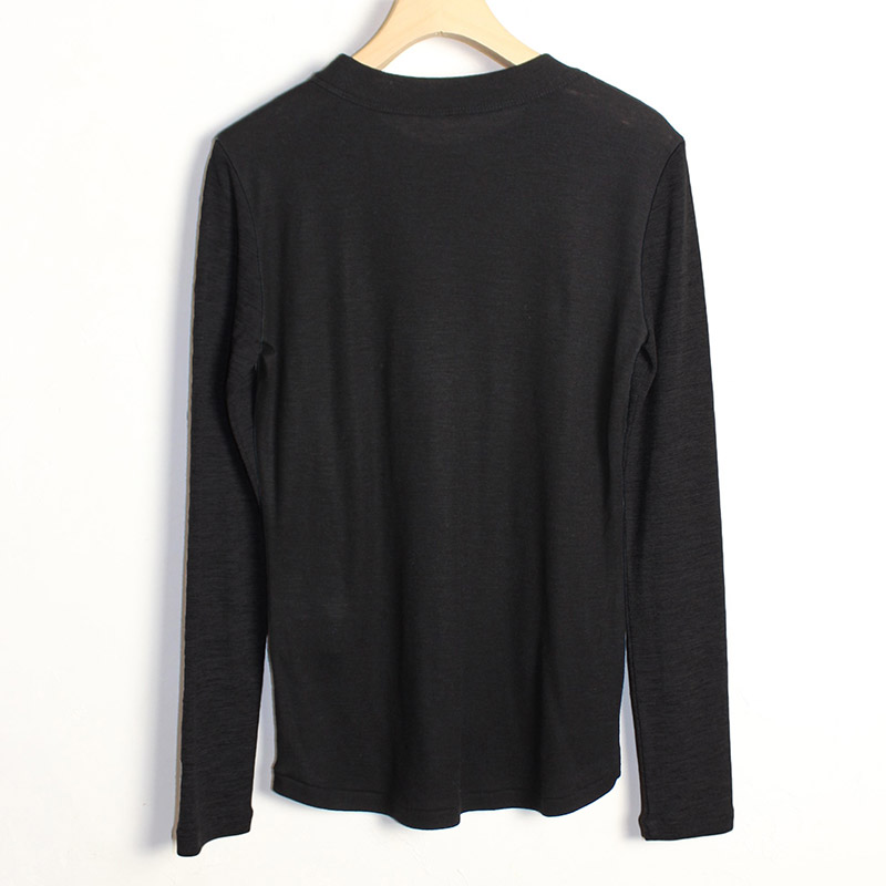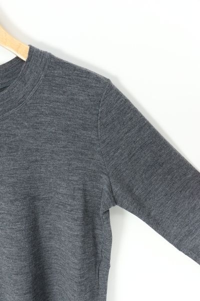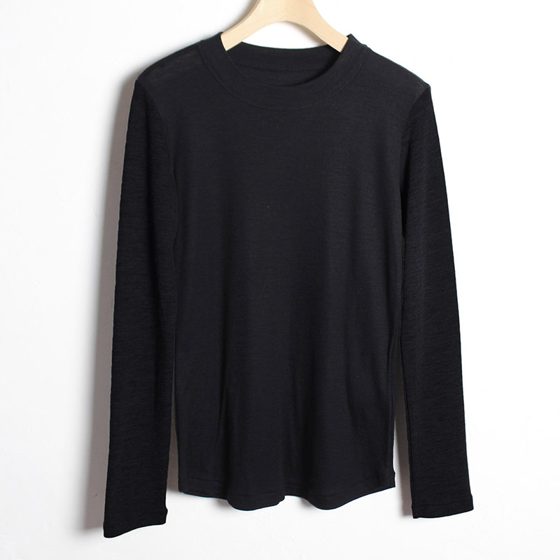 ヒップ上の着丈、伸縮性の良いコンパクトな身巾、長袖です。着心地が良く、すっきりとしたバランスで、冬のインナーにぴったりの一枚です。