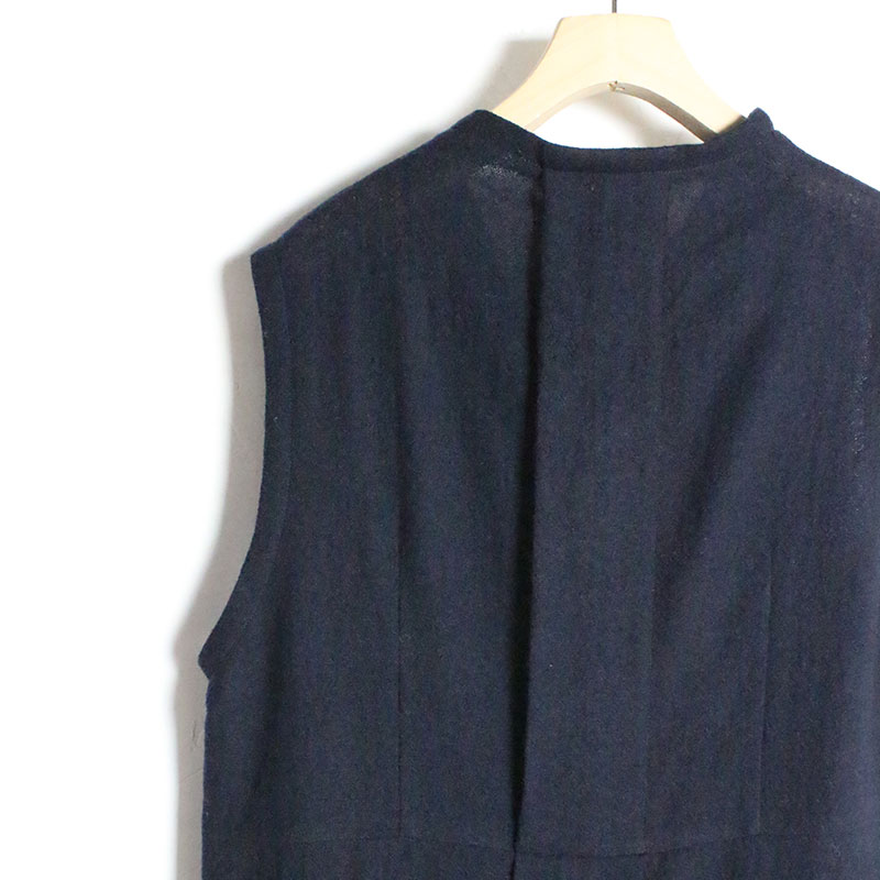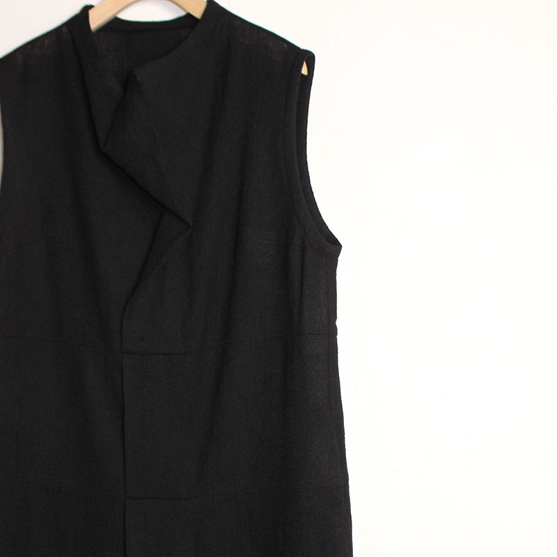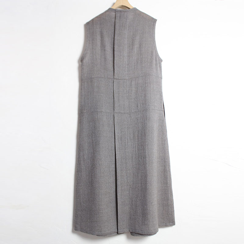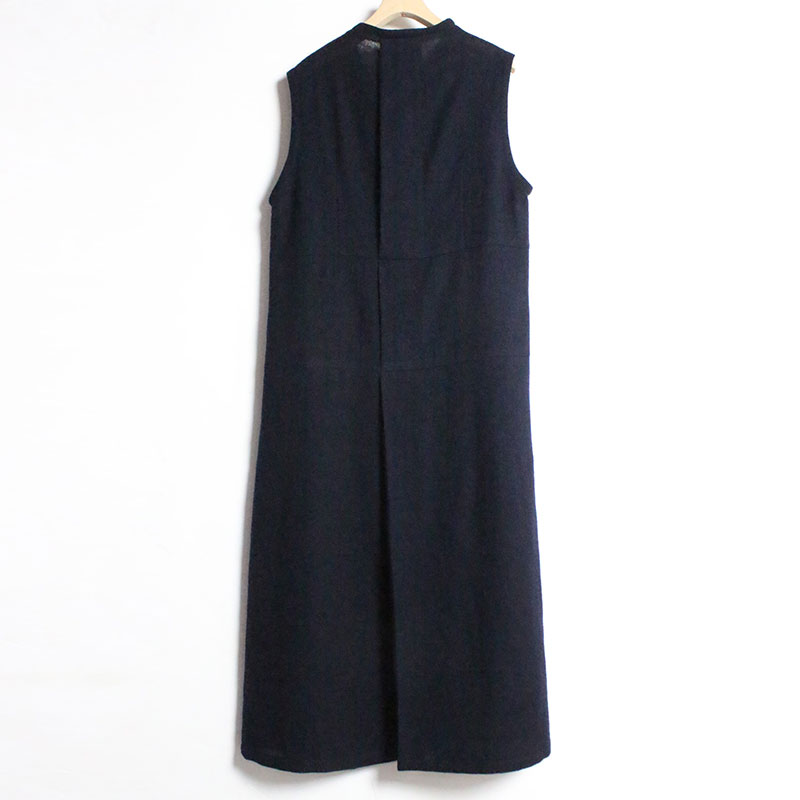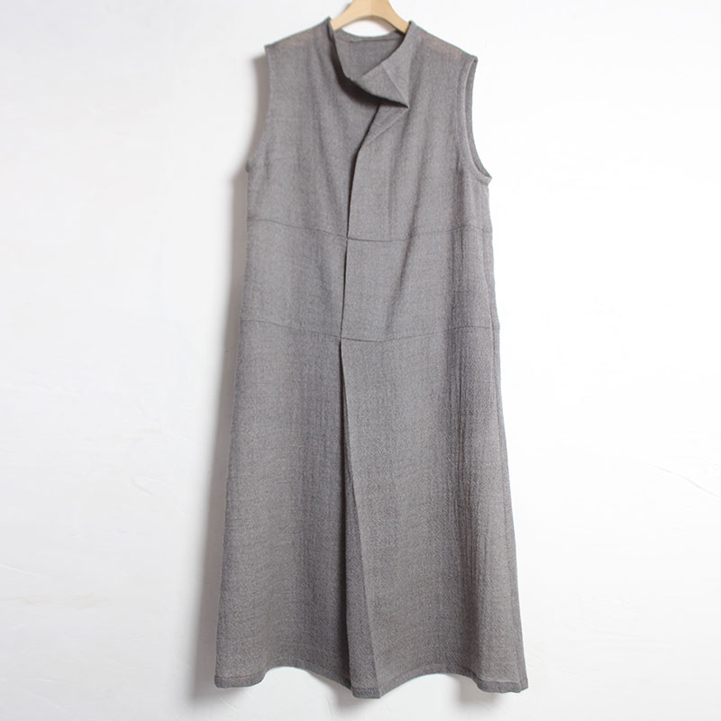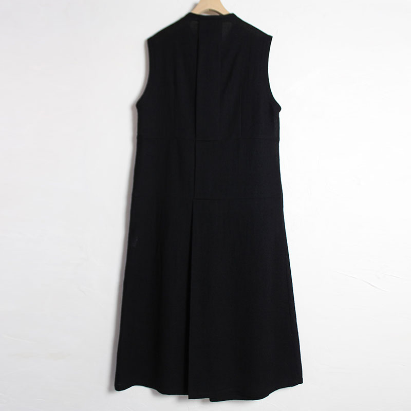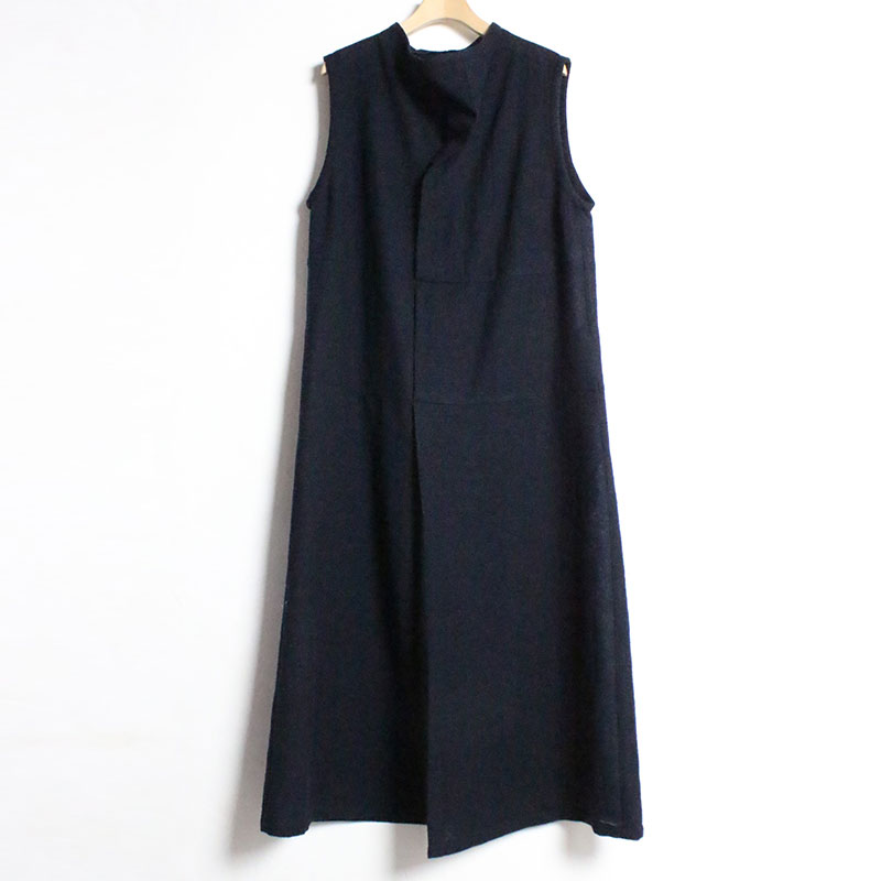 くるぶしの見える着丈、程良いゆとりの身巾、広めの肩巾、ノースリーブ、緩やかなAラインシルエットです。