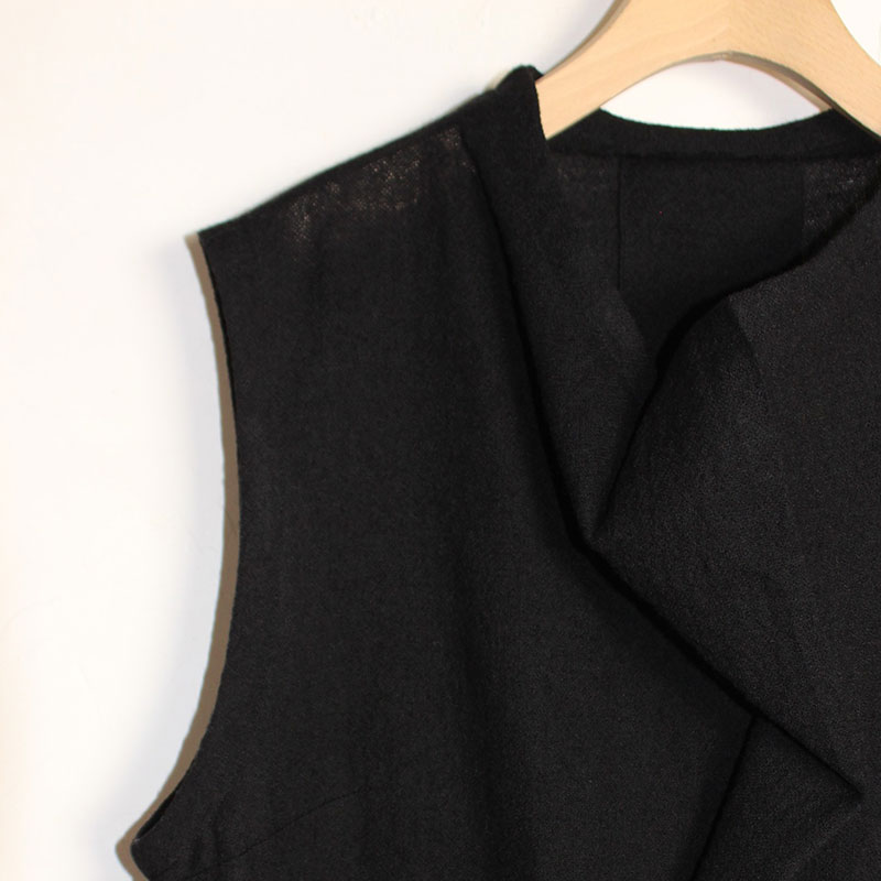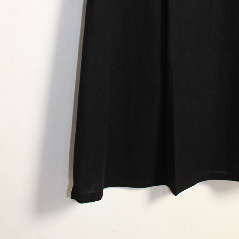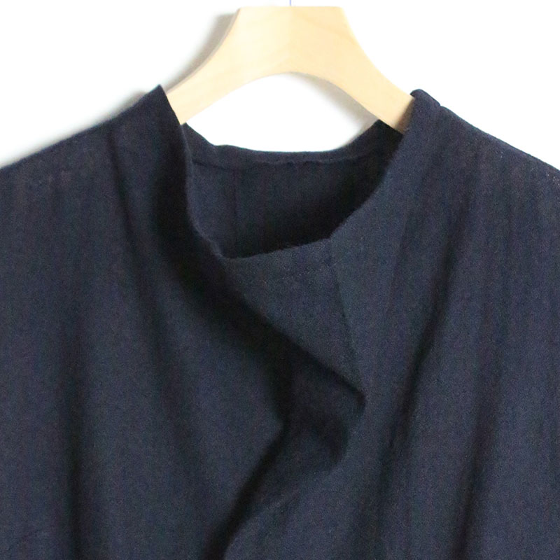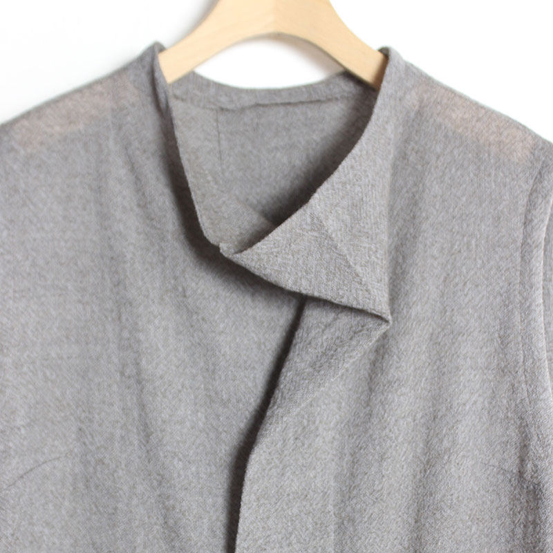 素材には縦・緯共にウールの梳毛48番双糸を使用して、ざっくりとやや薄手の平織ガーゼに織り上げた素材を使用しています。