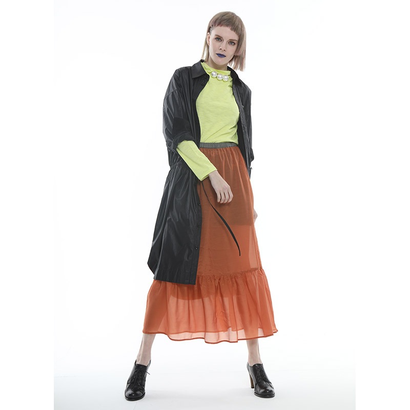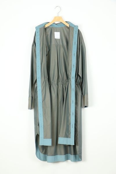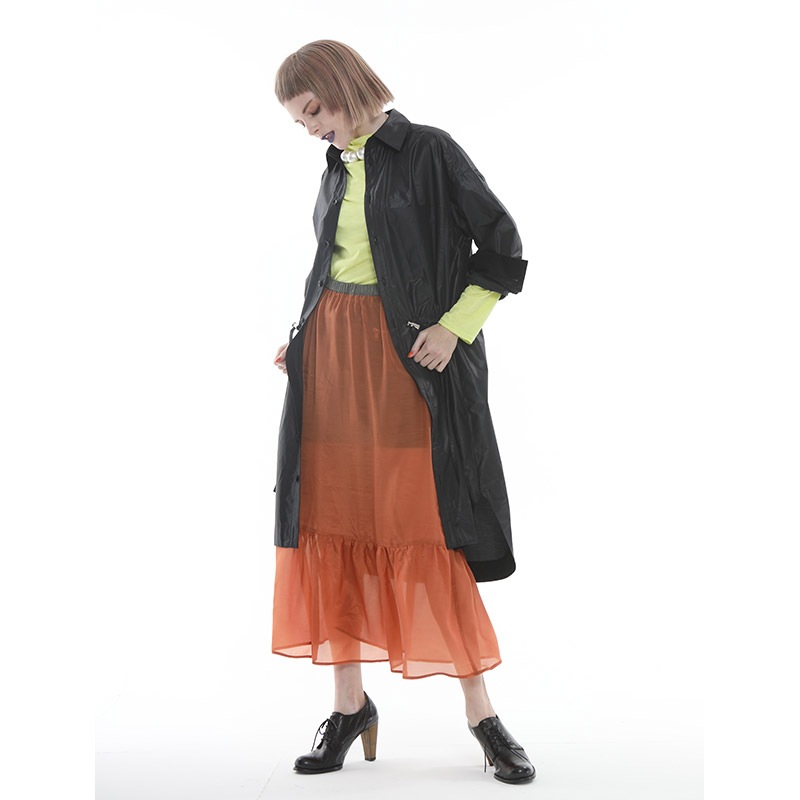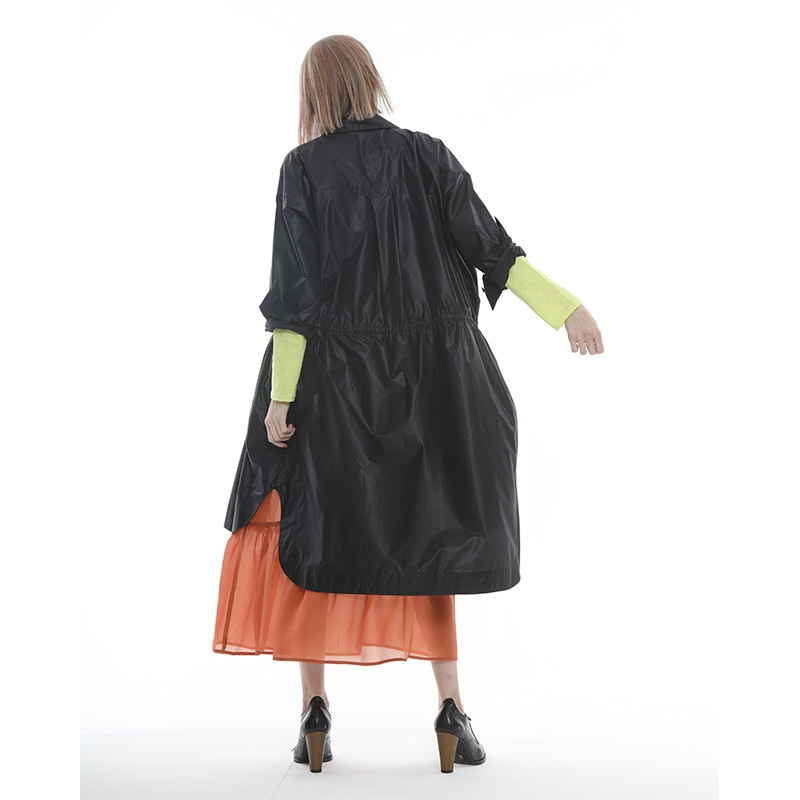 ウエストに紐とストッパーを付け、絞ってシルエットの変化を楽しめます。
