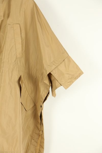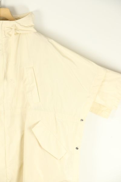 前身頃に片玉縁ポケットが付き、ダブルジップファスナー開きとなります。裏地は無く、一重のコートです。
