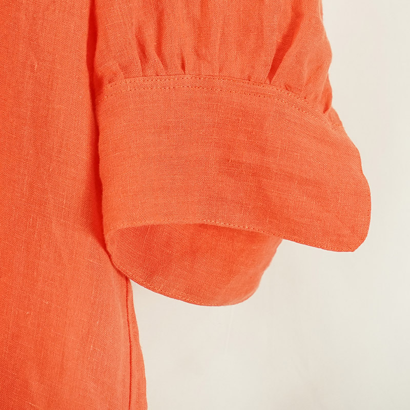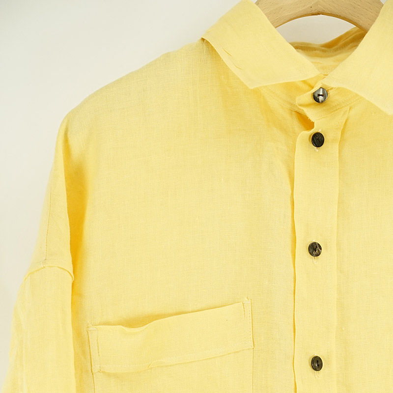 フレンチリネンの上品な光沢感とナチュラルなワッシャー感があり、清涼感のある風合いが特徴です。着用する度に肌に馴染み、心地の良い素材感となります。