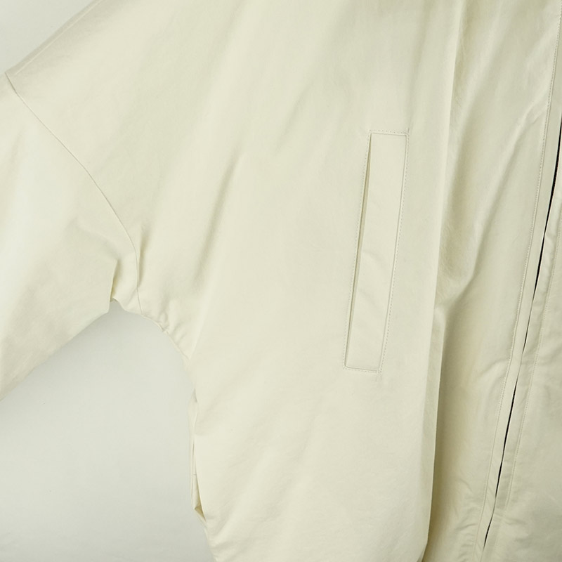 適度な厚み、程良いハリ感とソフトな風合いを兼ね備え、シルエットの保持と着心地の良さを両立させた上質なツイル素材になっています。