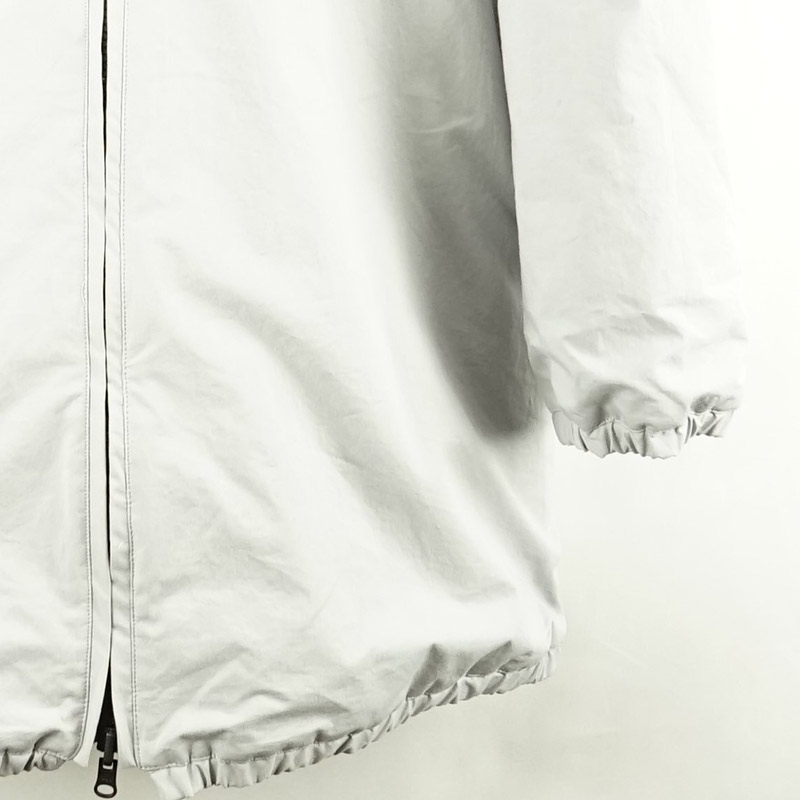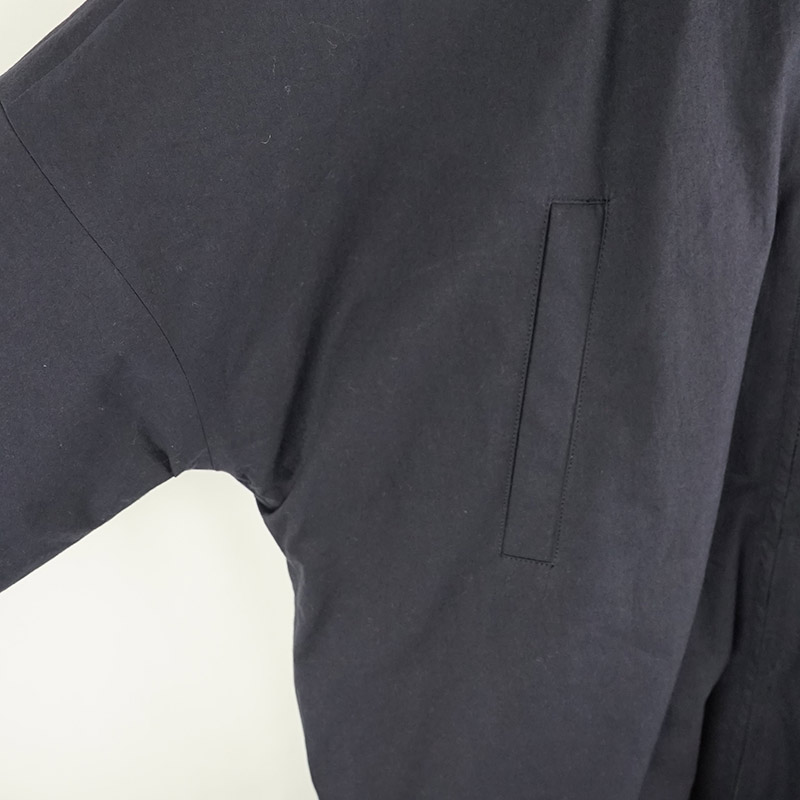 ボックスシルエット、ヒップの隠れる着丈、ゆったりとした身巾、ドロップショルダー、長袖です。