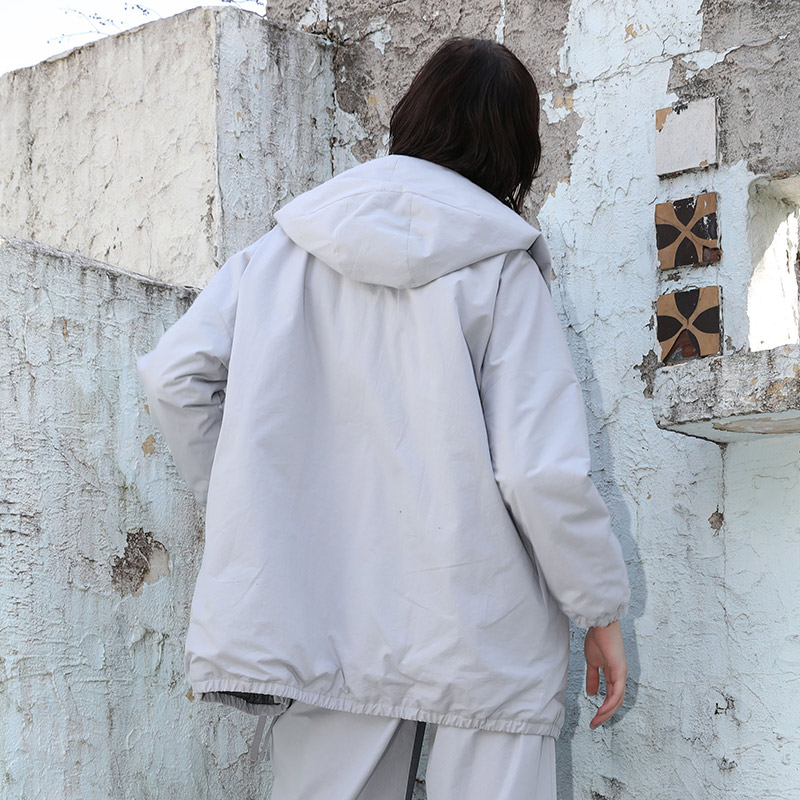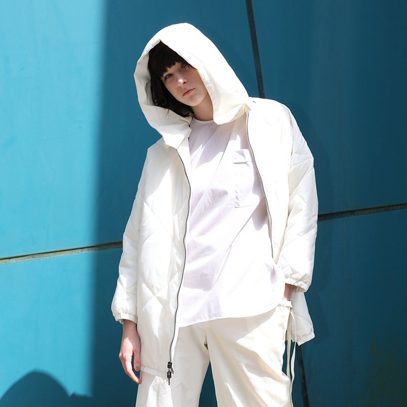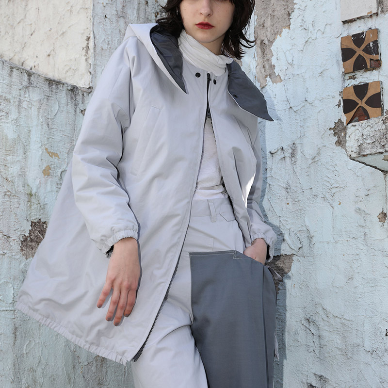 【KAMISHIMA CHINAMI(カミシマチナミ)の取外しフード付き中綿リバーシブルコート】