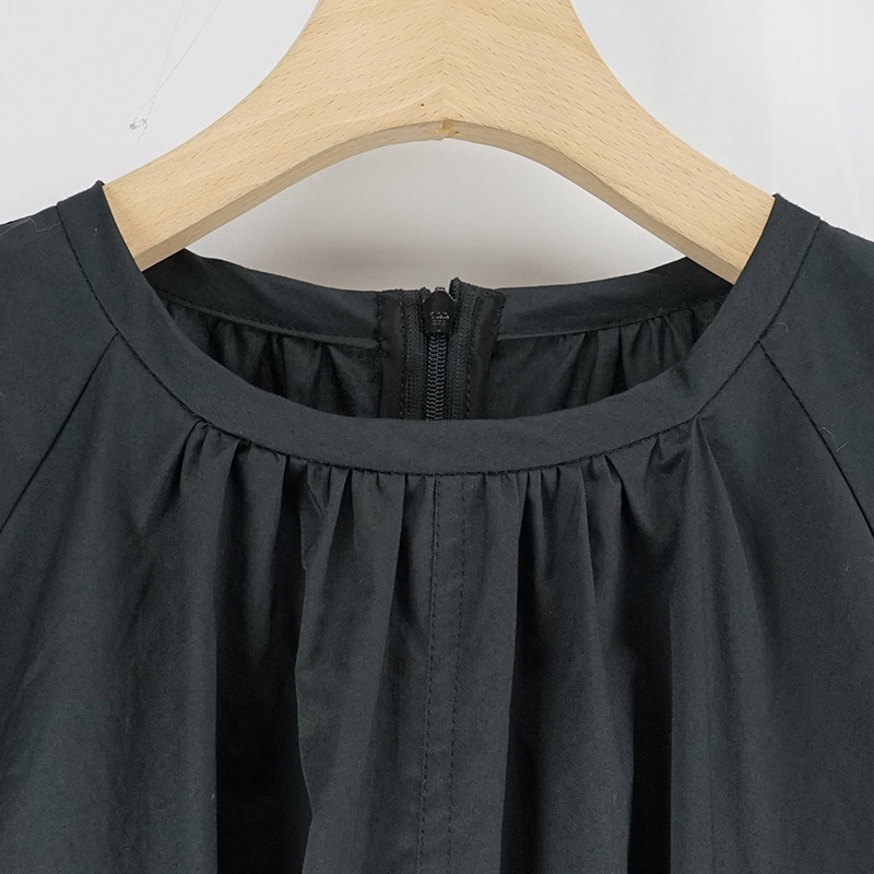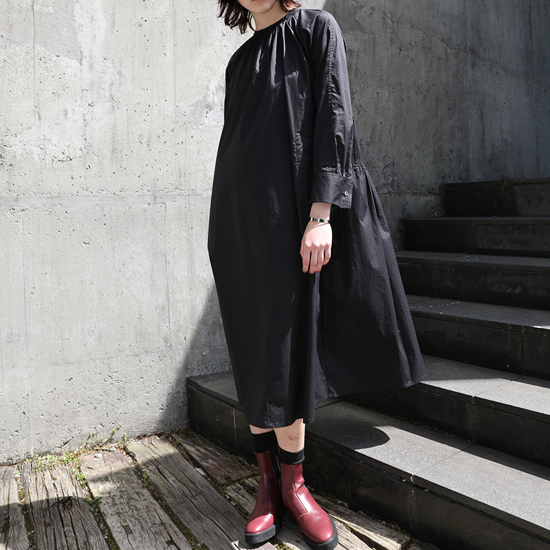ハイカウントツイルノーカラーギャザーワンピース