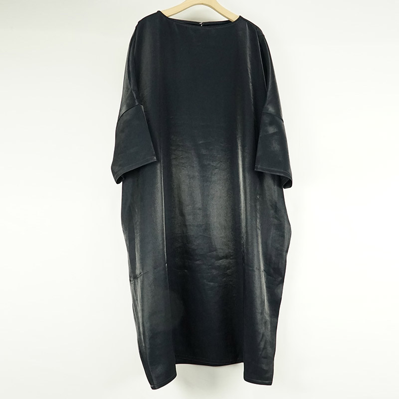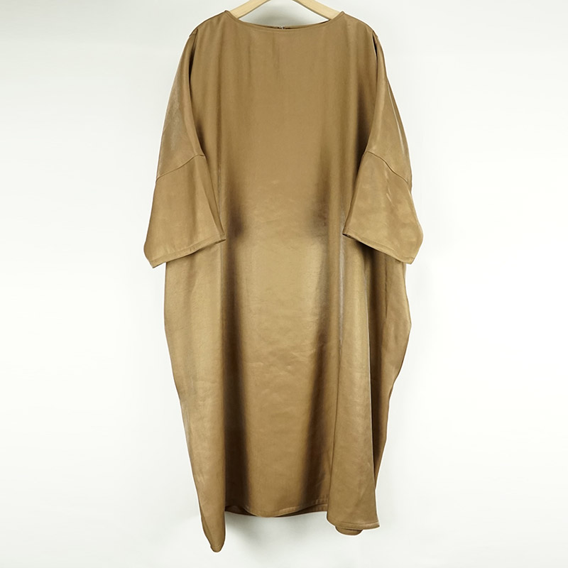 ヴィンテージシャインサテンボートネックテーパードワンピース