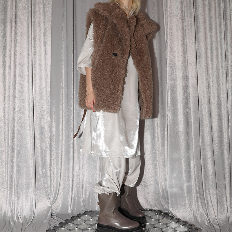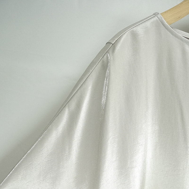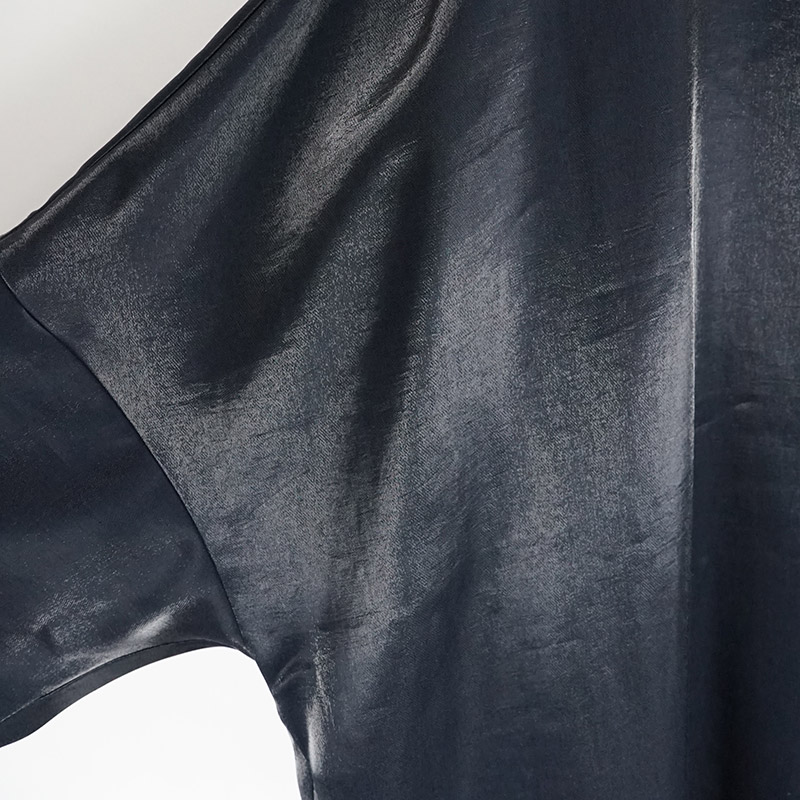 素材には、ラメに近い光沢感の強いしなやかなヴィスコースレーヨン/ポリエスエル糸でサテン地に織り上げた素材を使用しています。