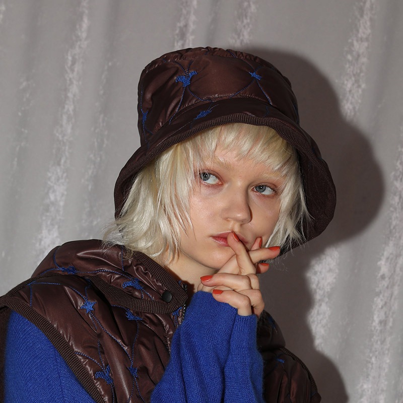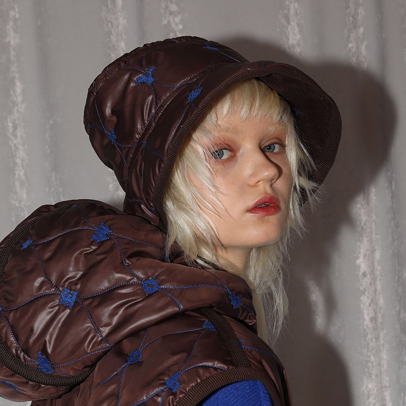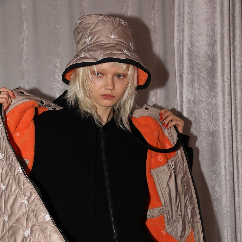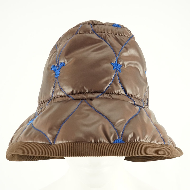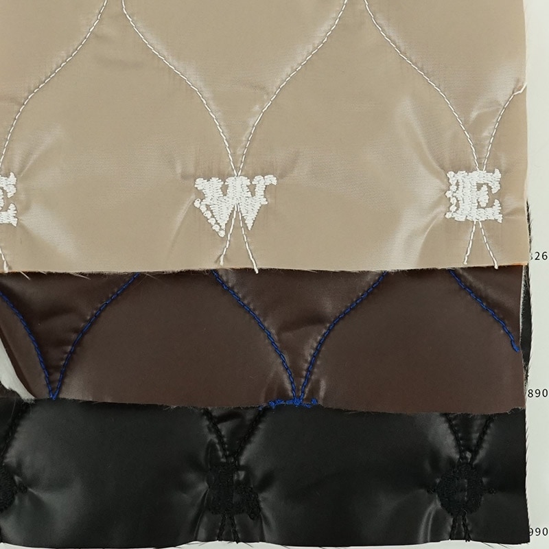 素材には、国産の高密度ポリエステルタフタを使用し、柔らかい中綿とフリースを重ねてオリジナル柄をキルト刺繍しています。