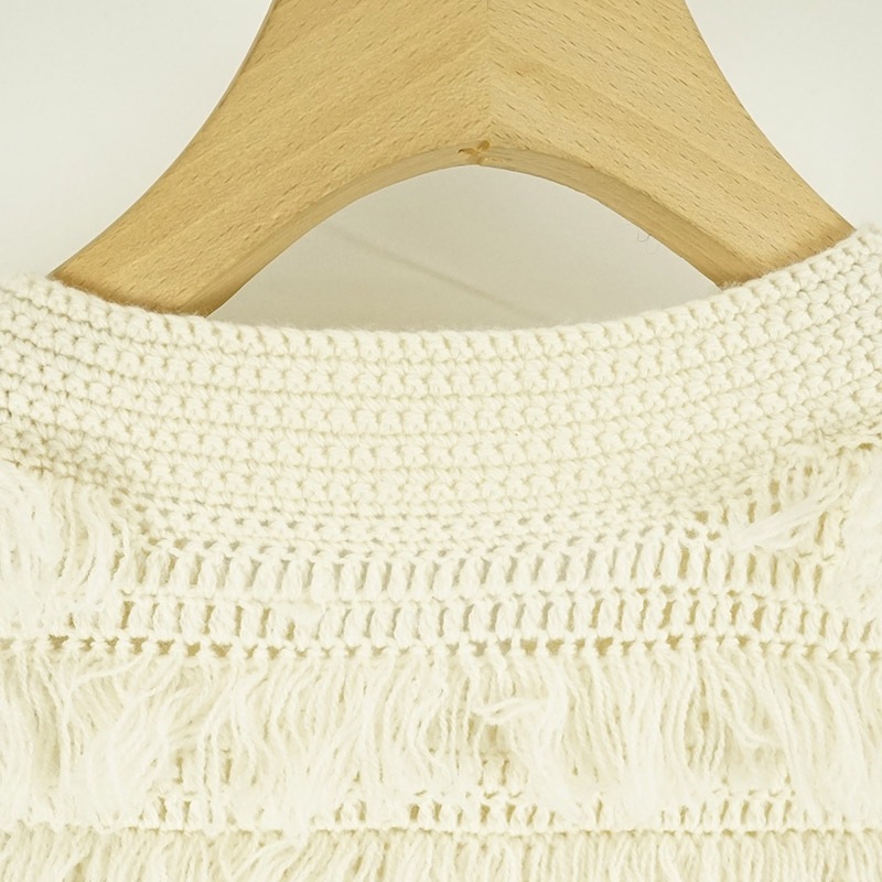 ウールカシミヤかぎ針編クルーネックカーディガン