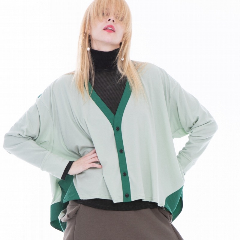 歩くたびに裾がゆらゆらと波打つVネックフレアカーディガン。