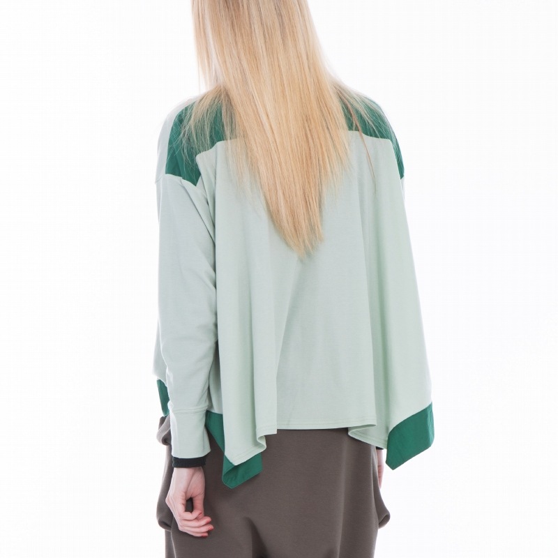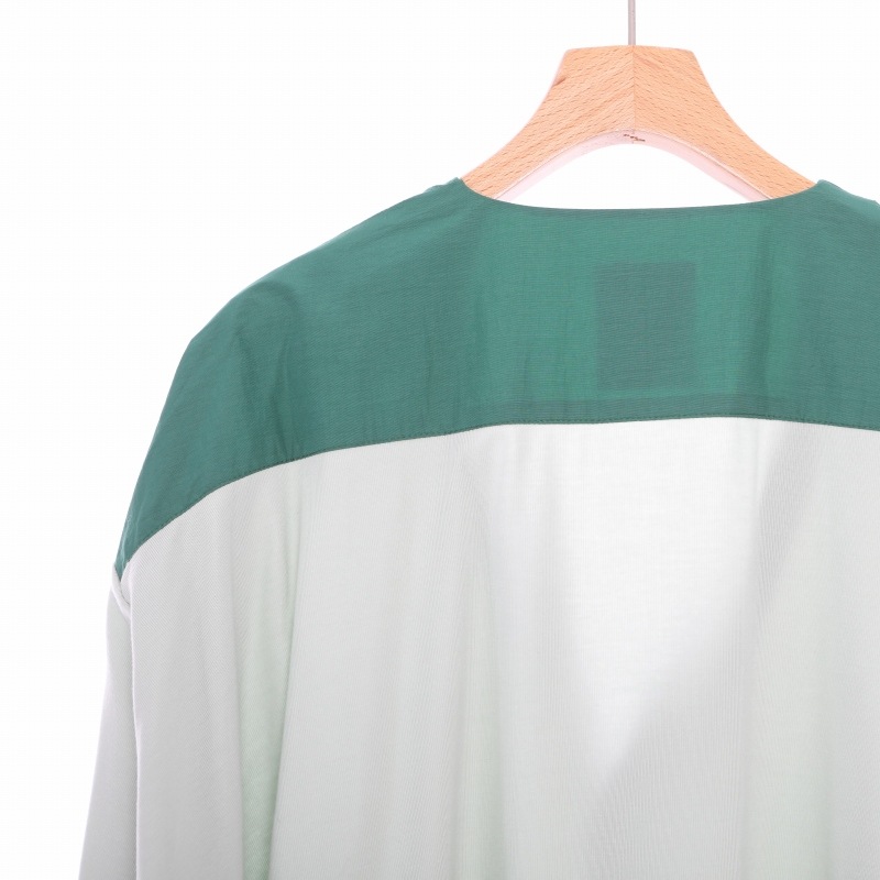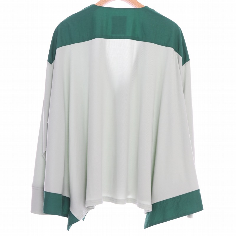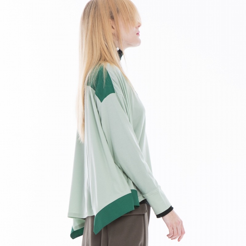 ドロップショルダー、ゆとりのある袖巾で裾にかけて広がるデザインになっています。