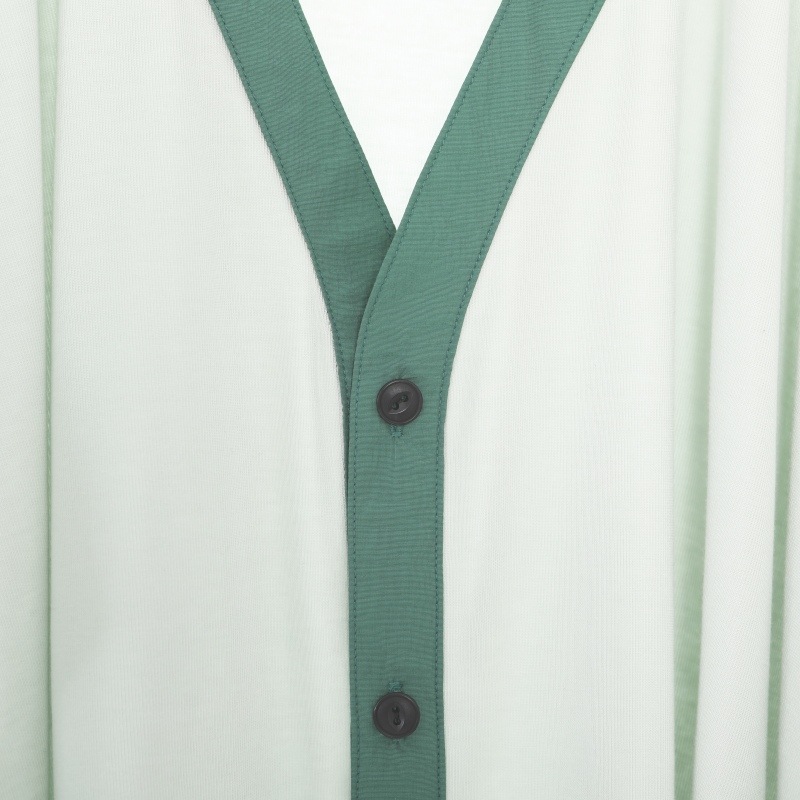 前立て、脇裾、後ろヨークには布帛の同系色別布を使用し、カジュアルさをプラスしています。