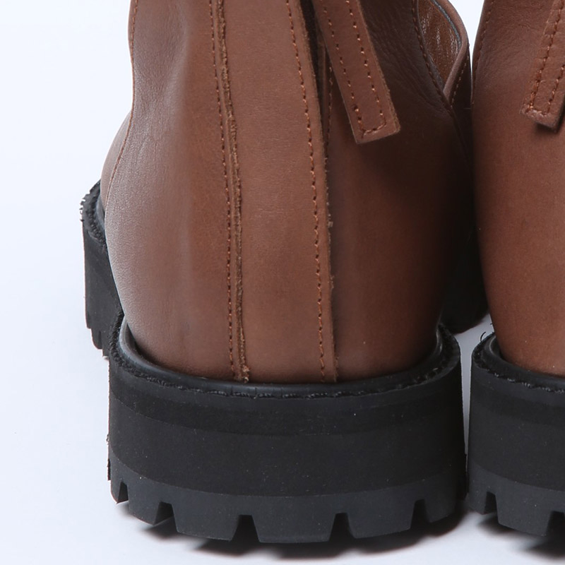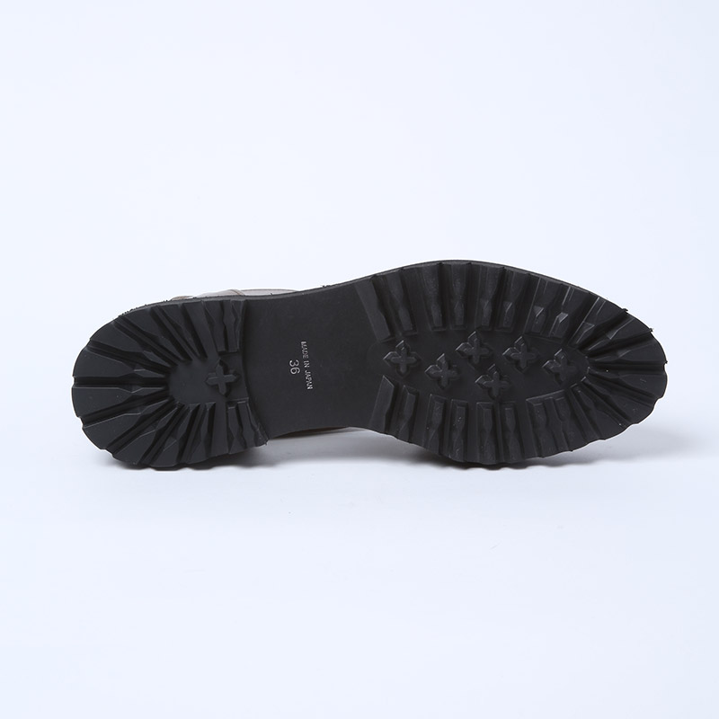 素材には厚手のステアレザーを使用し、アッパーを流線的なラインにしています。