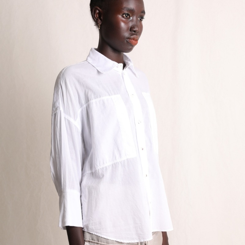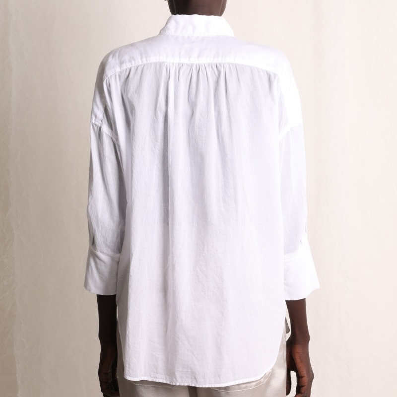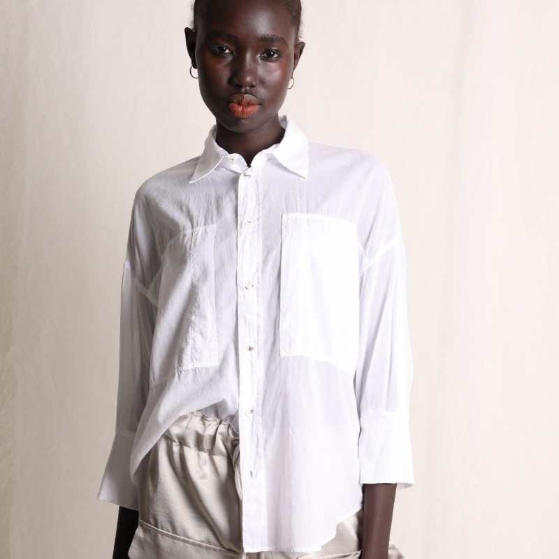 全体に柔らかい風合いに仕上げた前開きシャツブラウス。