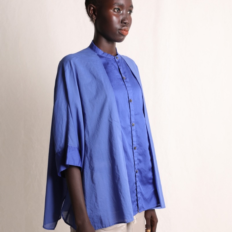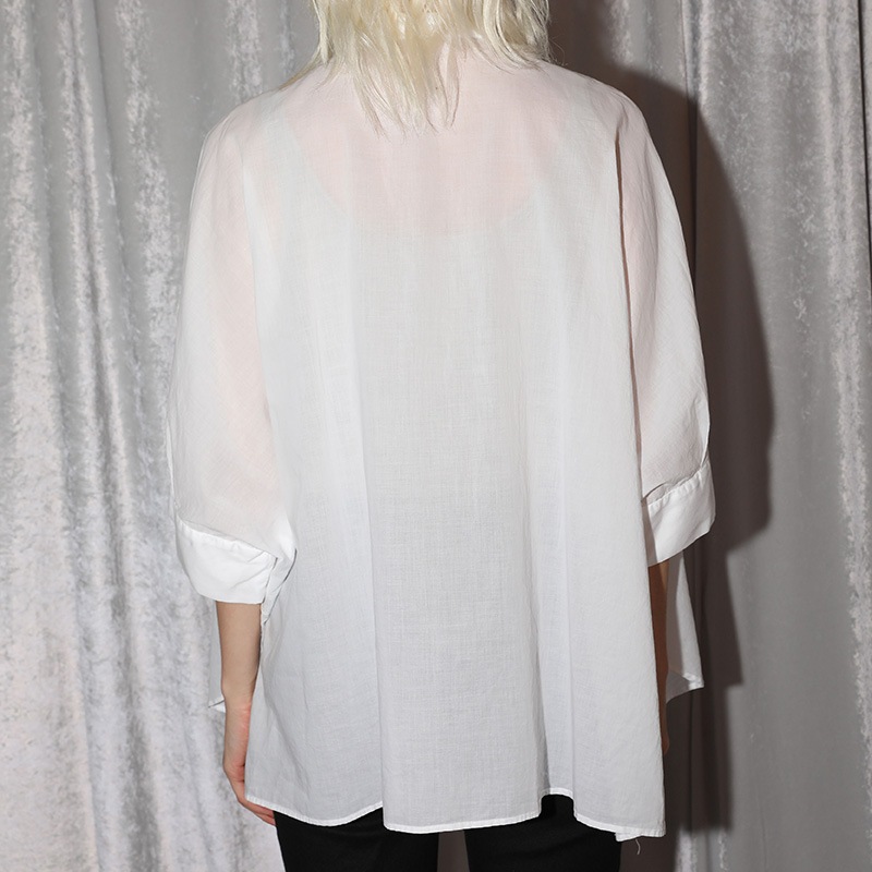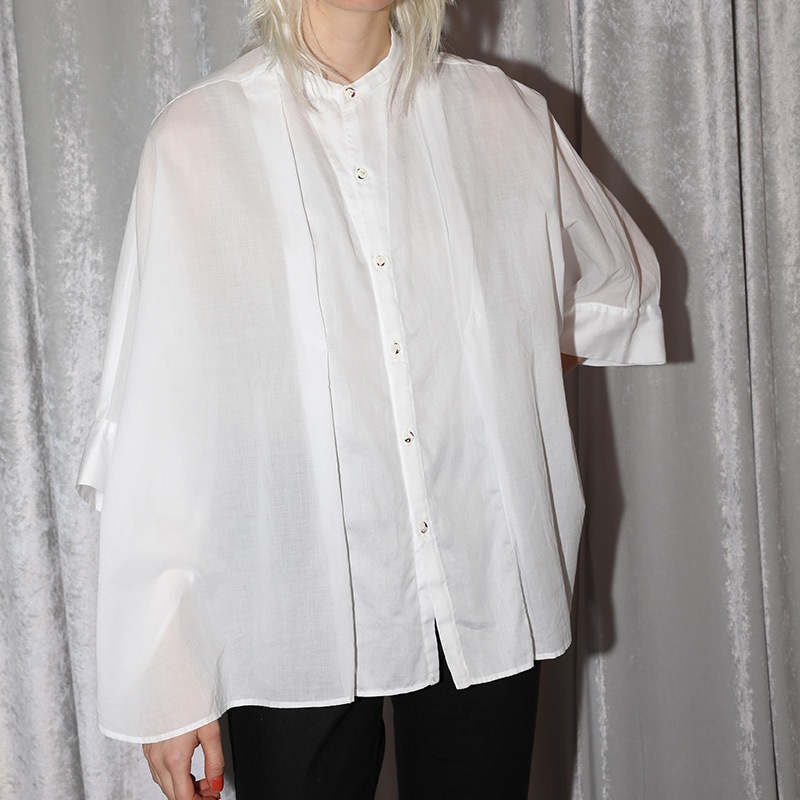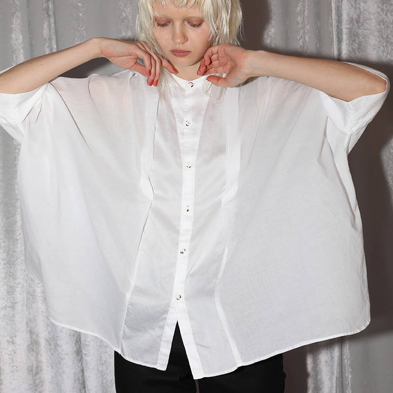【Yoriori(ヨリオリ)のビッグポンチョ風スタンドカラーブラウス】