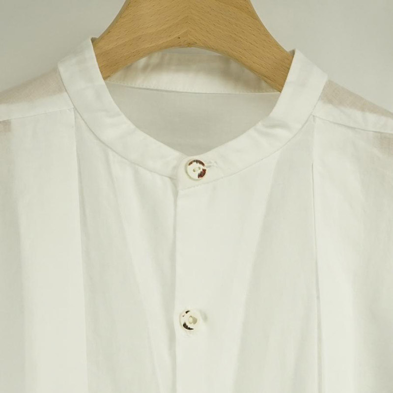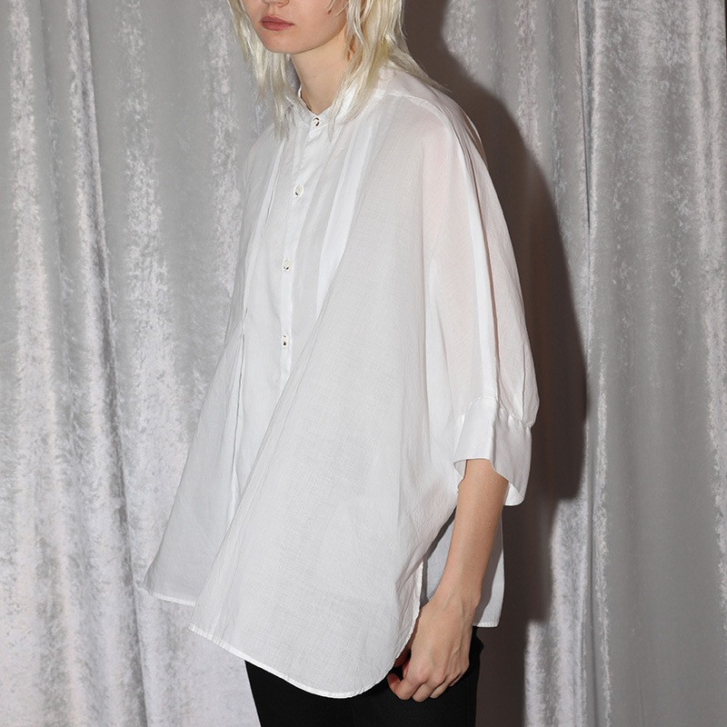 肩線から前身頃にタックが入り、縦の陰影がすっきりと見えます。