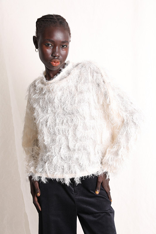素材にはインパクトのある毛足の長いシースルーカットジャカードの国産素材を使用しています。