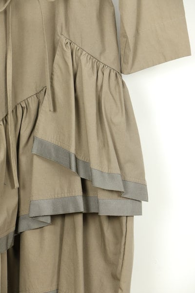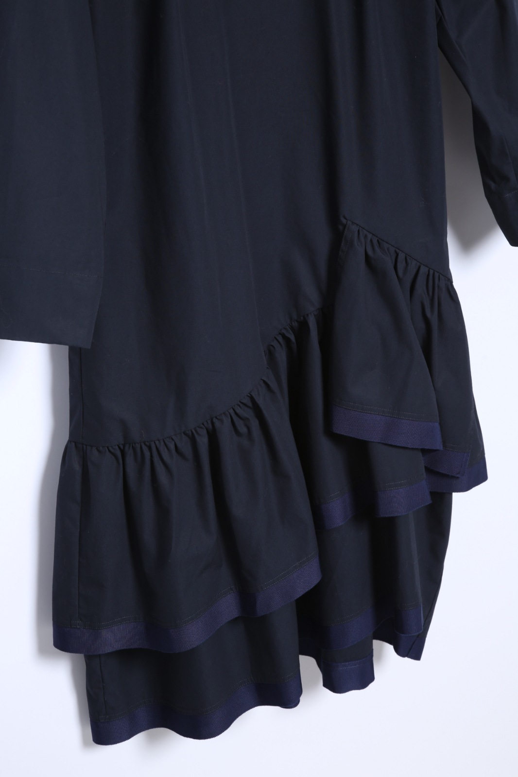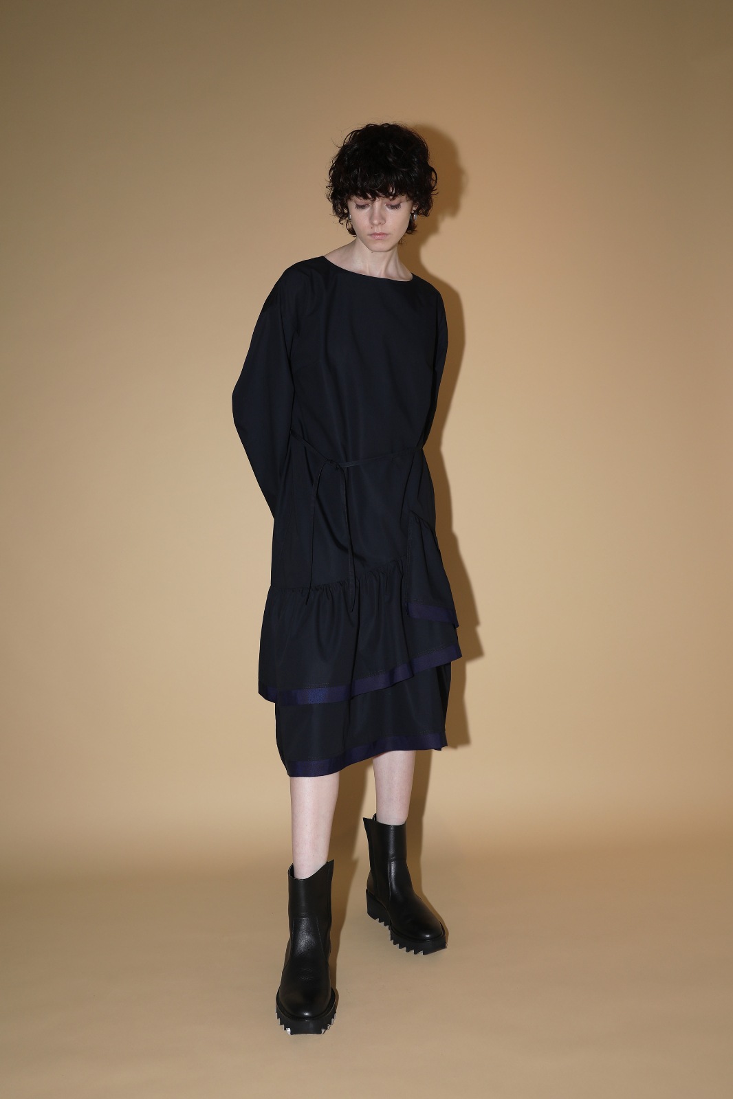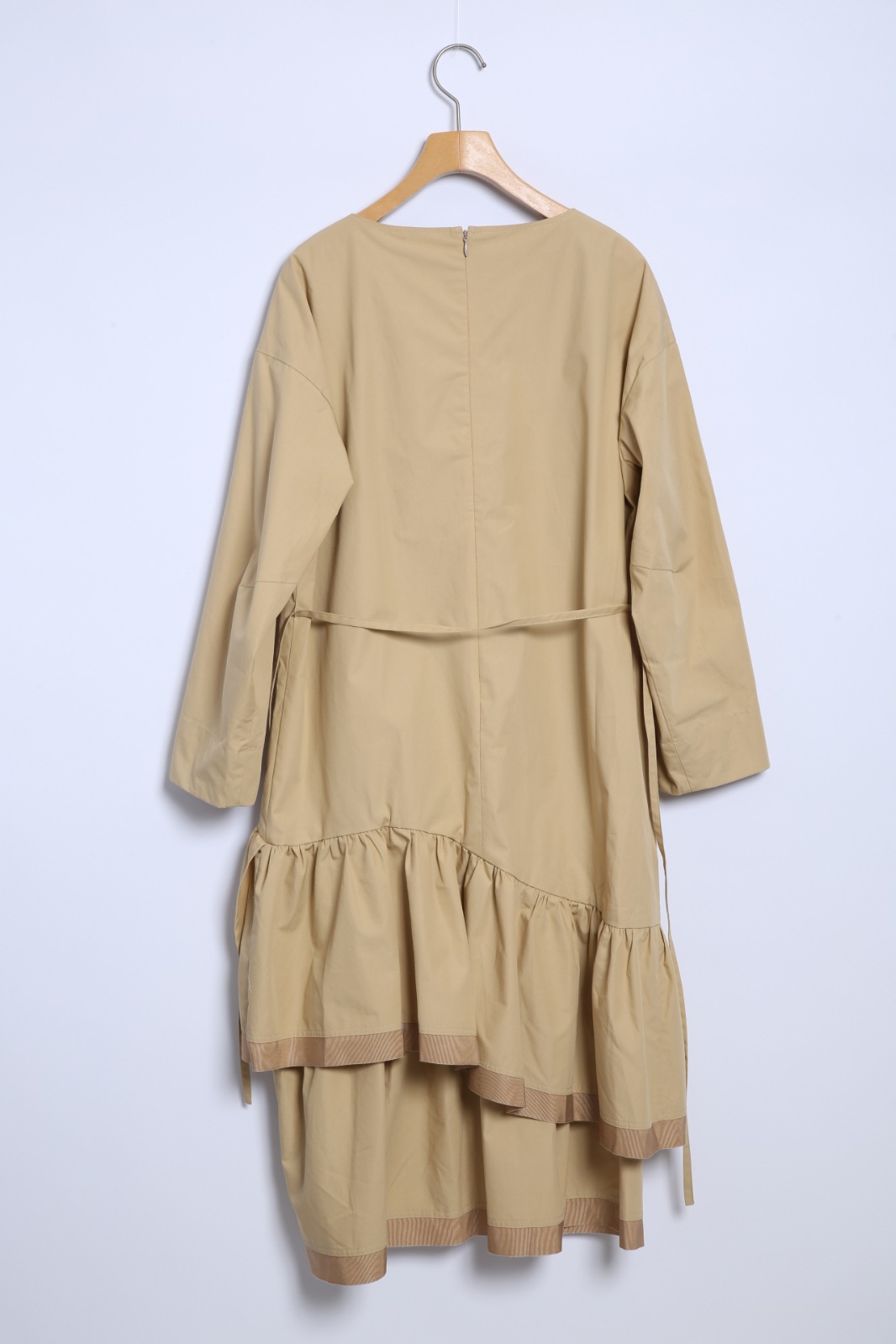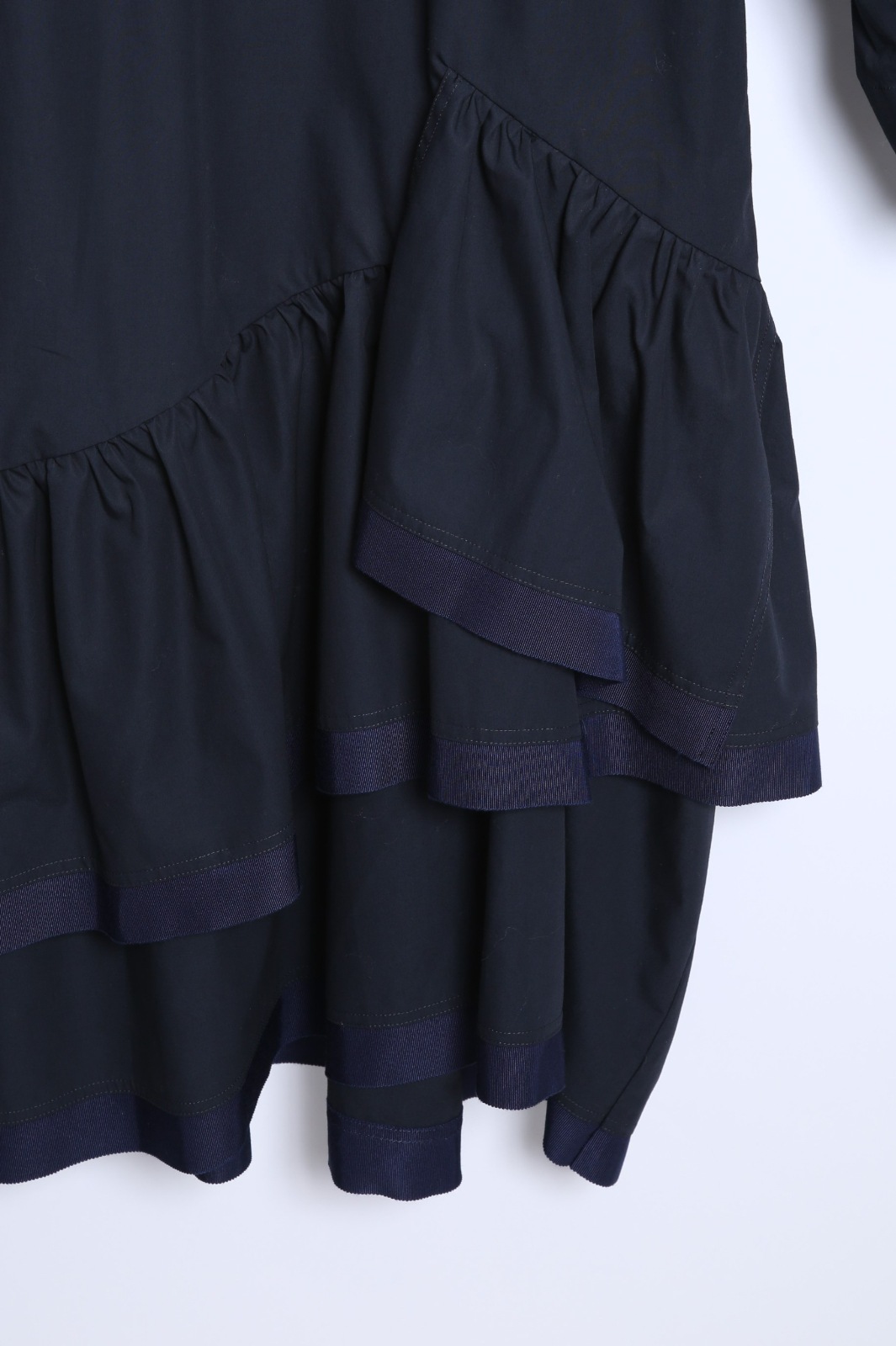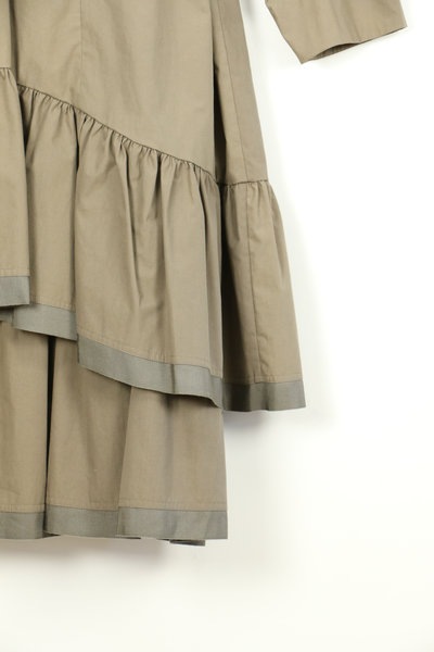 ボックスシルエットから数段切替のギャザーフリルがふわっと広がります。