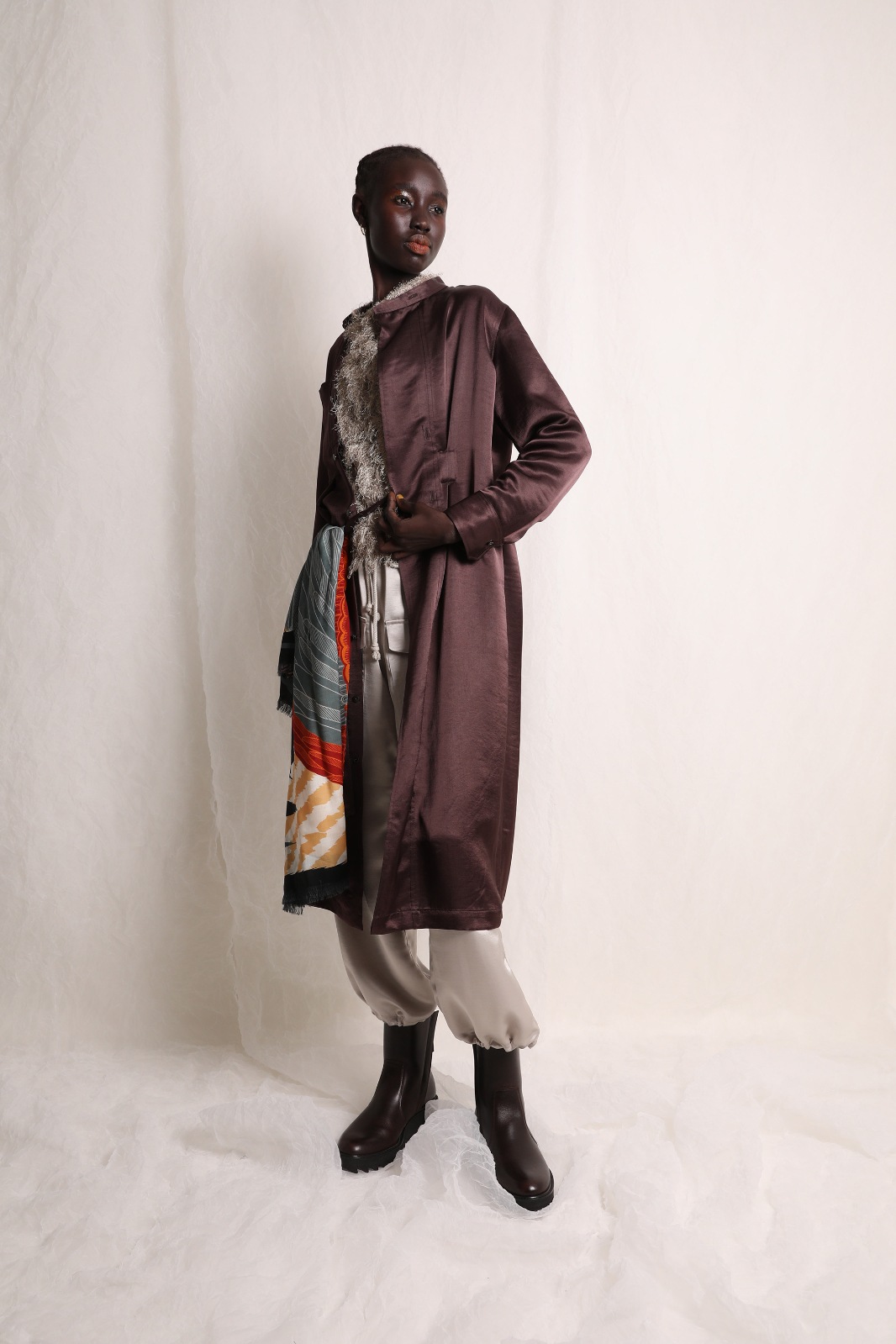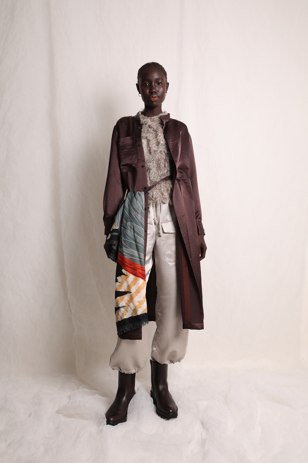 素材にはトリアセテートならではのドレープ感が美しく、深みのある色合いの程良い中肉厚のサテン素材を使用しています。