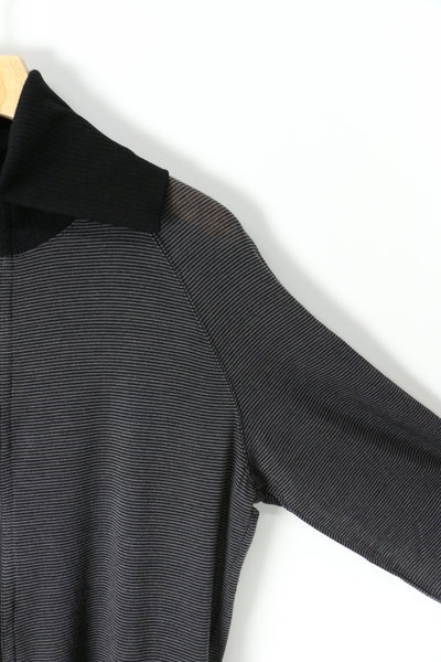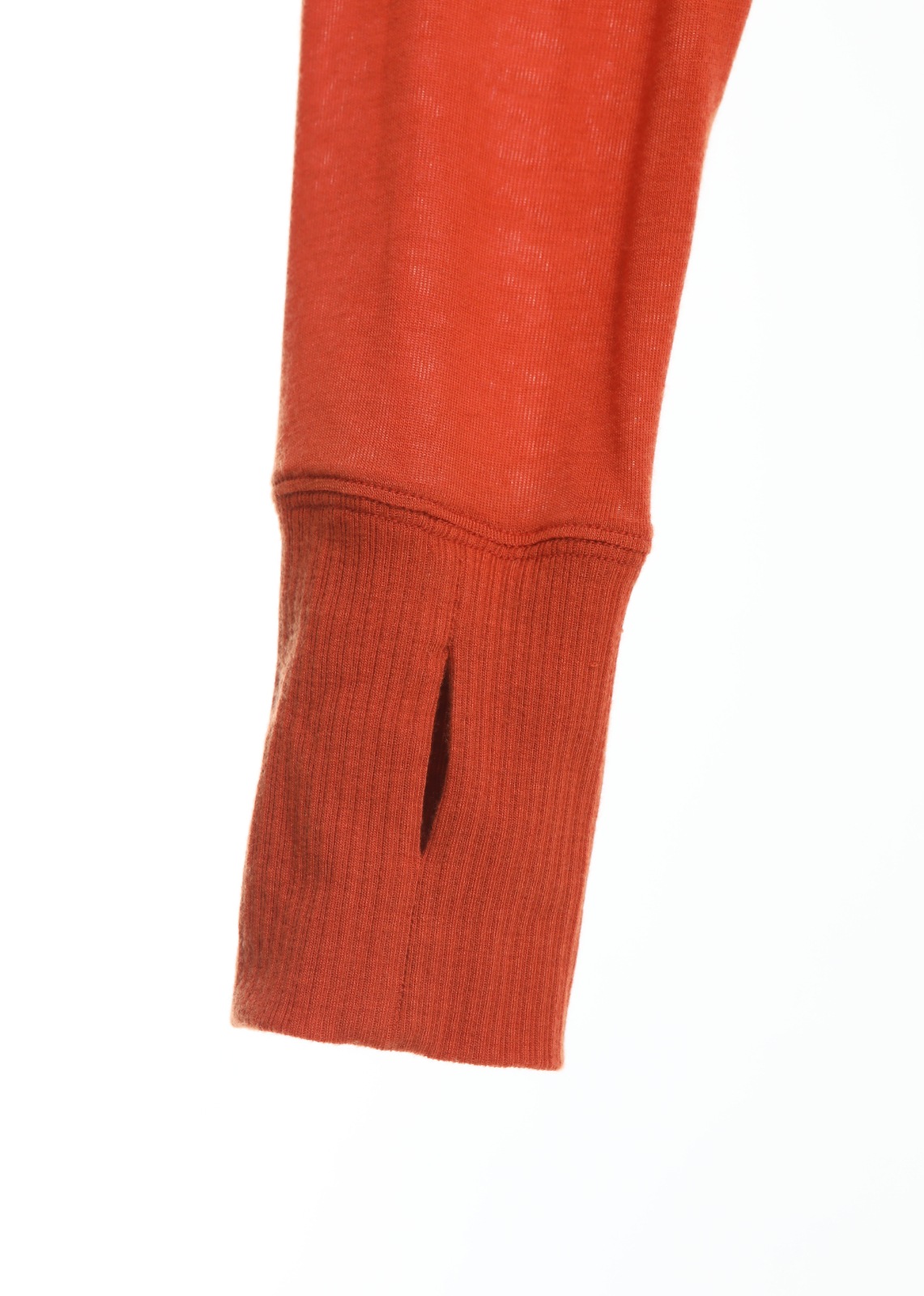 リブを折り返して袖丈の調整が可能な長めの袖丈になっており、袖リブには親指を出すスリットが開いています。