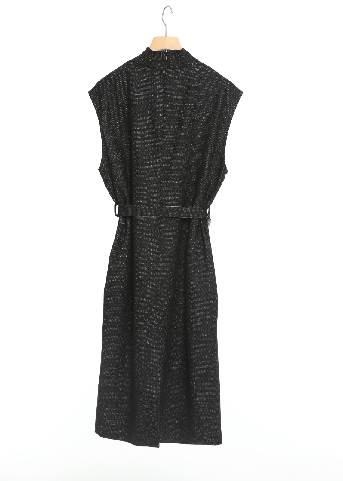 ドレープネックのノースリーブワンピース。