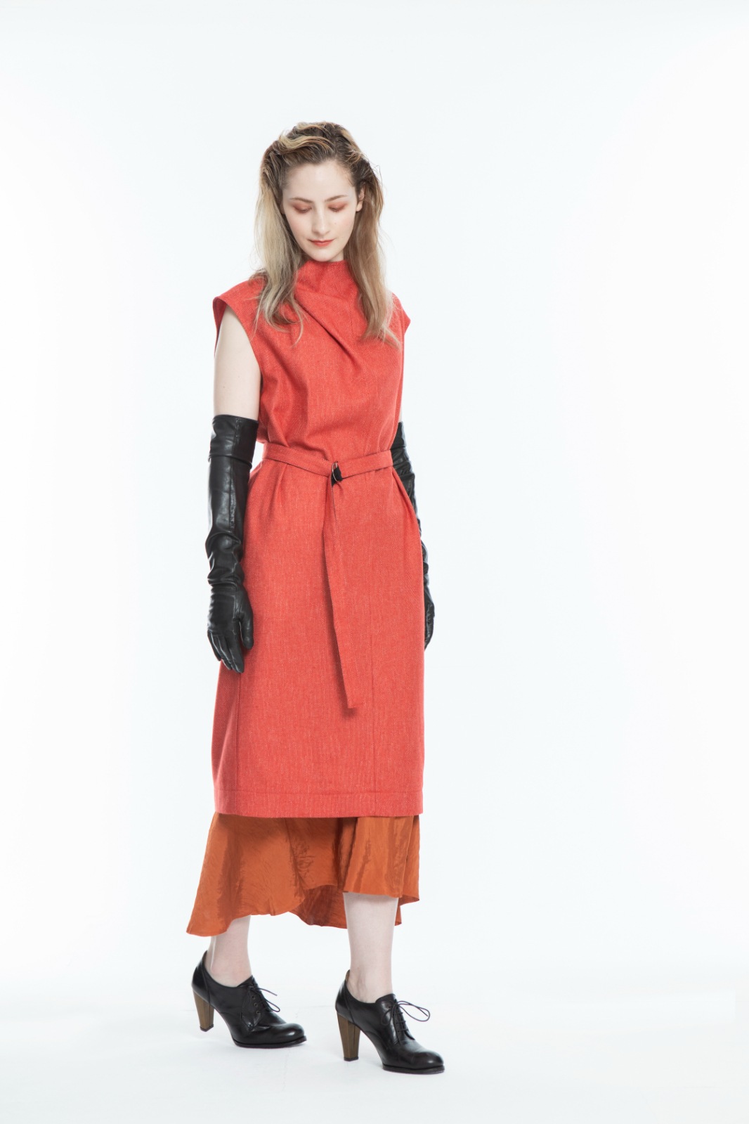 取り外し可能なウエストベルト付きで、ウエストを絞ってシルエットの調整が可能です。