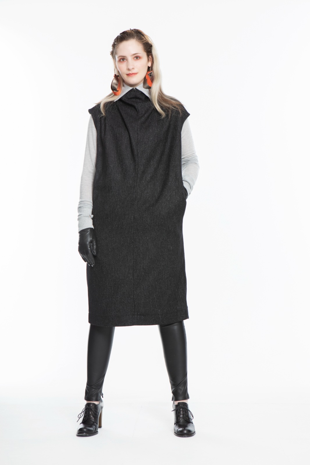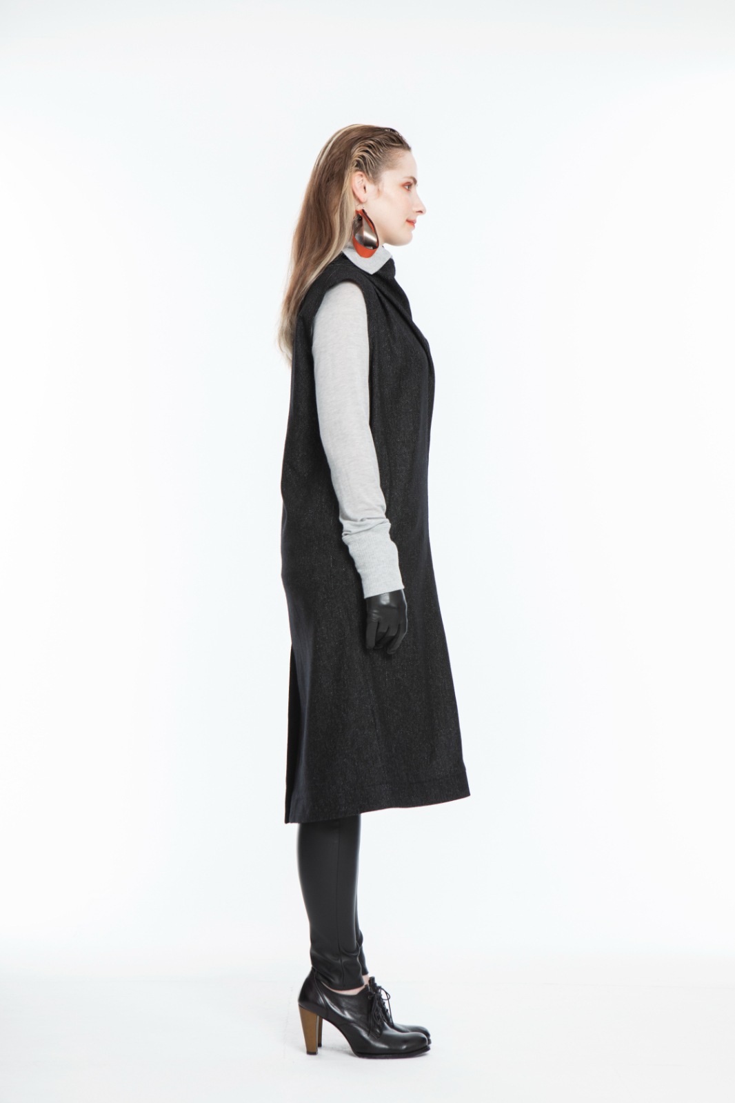 ハイネックインナーをインナーに着用しても素敵です。