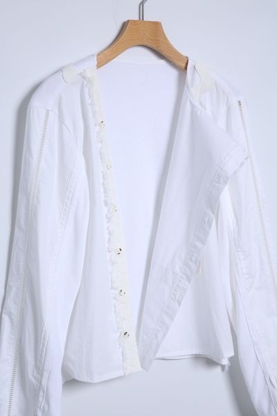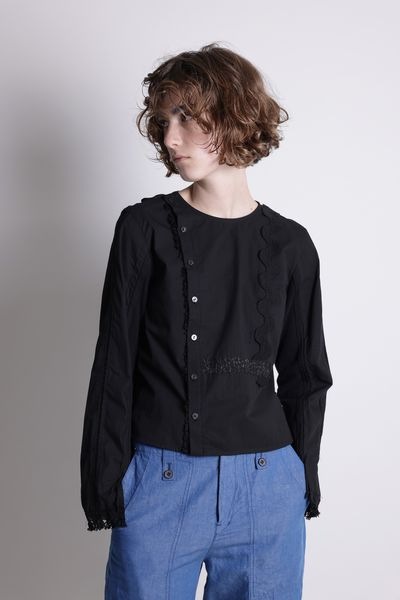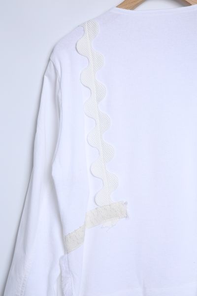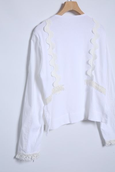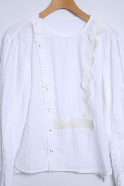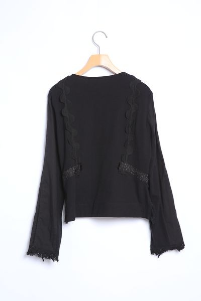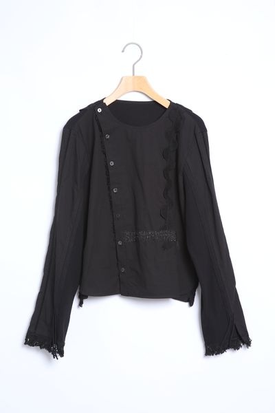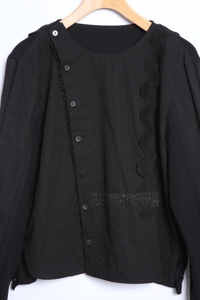 サーフニットミックス ノーカラーレースディテールブラウス