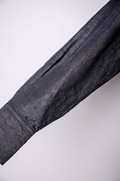 素材の特性上、ネップやスラブ(部分的に糸が太くなる、太さにムラが出る)の発生、ステッチ部分のパッカリングが起き、接触・摩擦で他の物へ色移りする場合が有り、シワになり易いです。