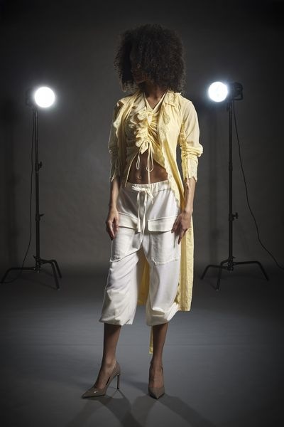 ウールミルドジャージー ギャザーウエストカーゴパンツ