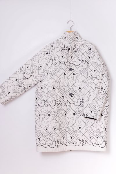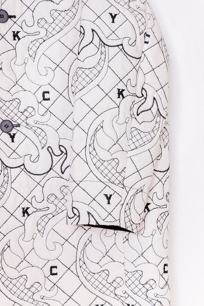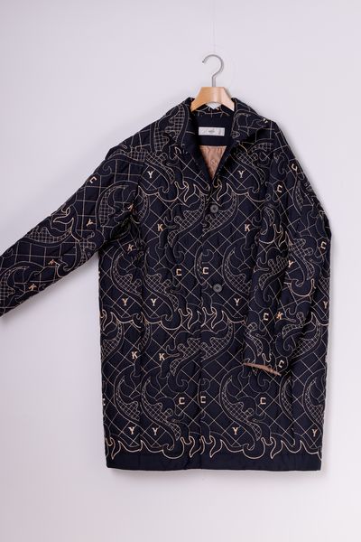 柄は流線形の波模様と斜めに連なる大小の菱形にKCYロゴを散りばめたオリジナルキルト刺繍です。