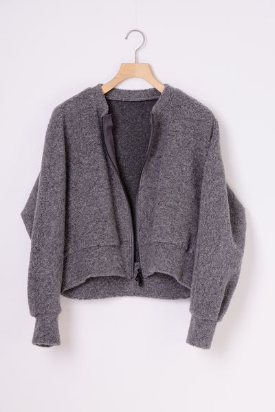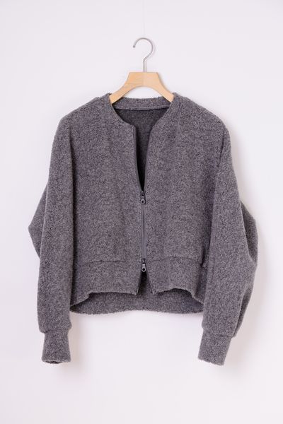 ノーカラー、ボレロカーディガンのようなショートジャケット。