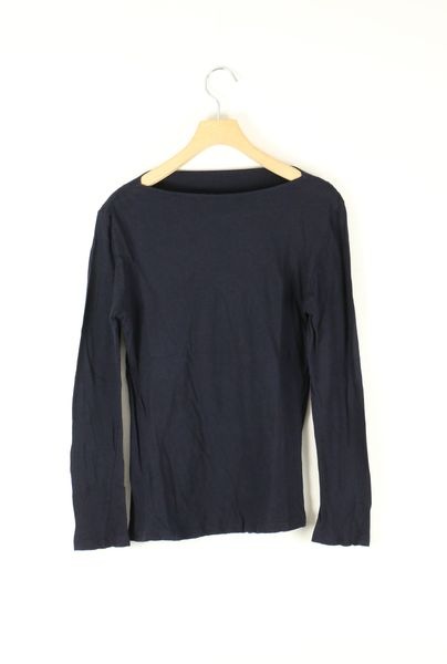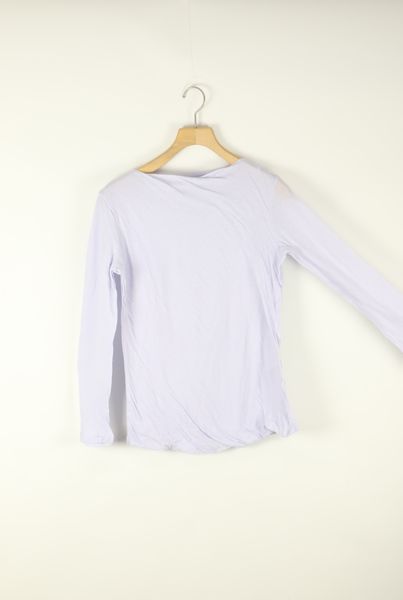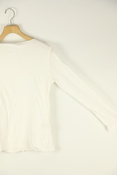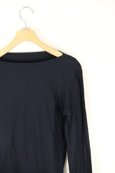 前身頃を二重にして、衿ぐり縫い目を無くした5分袖カットソー。