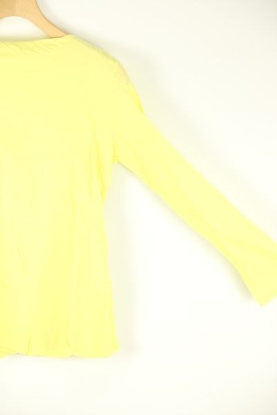 【KAMISHIMA CHINAMI(カミシマチナミ)YELLOWの洗える綿シルク ラウンド二重前身頃5分袖カットソー】