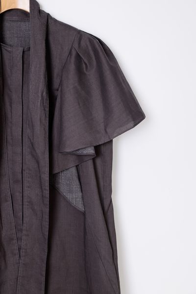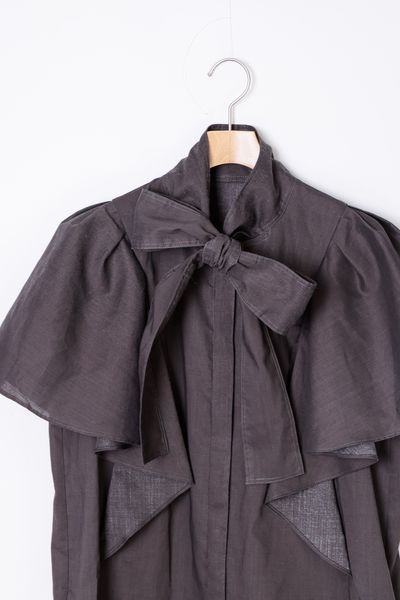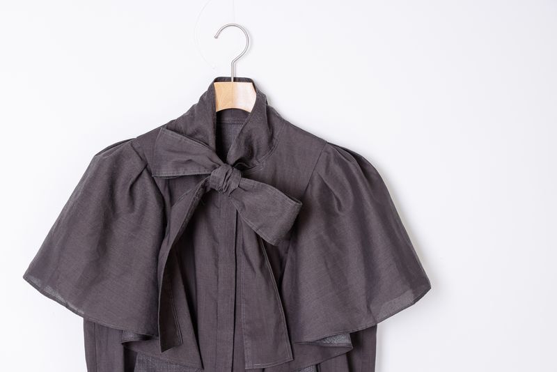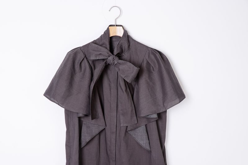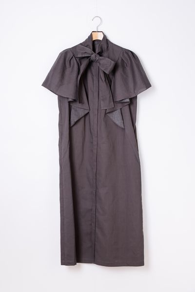 ボウタイ仕様の前開きワンピースです。