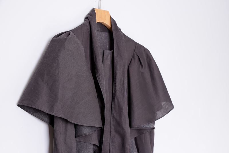 脇に便利なポケットがあり、前は比翼開きでエレガントな雰囲気を演出しています。