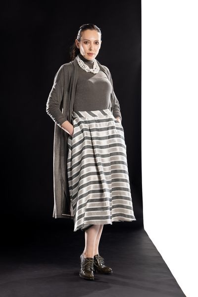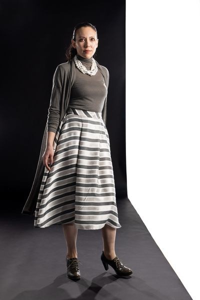 透け感のある素材を使用しており、ロング丈でも軽やかな印象を与えます。