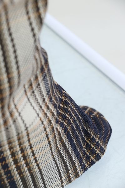 素材には太番手の糸をざっくりと織り仕上げることで、目を引くような印象を与える厚手のチェック柄ツイル素を使用しています。